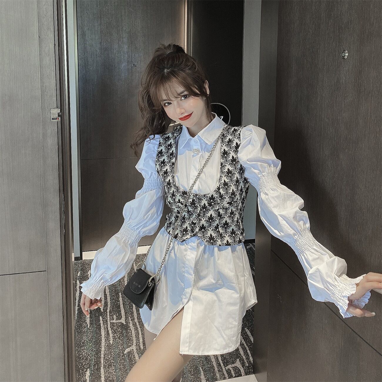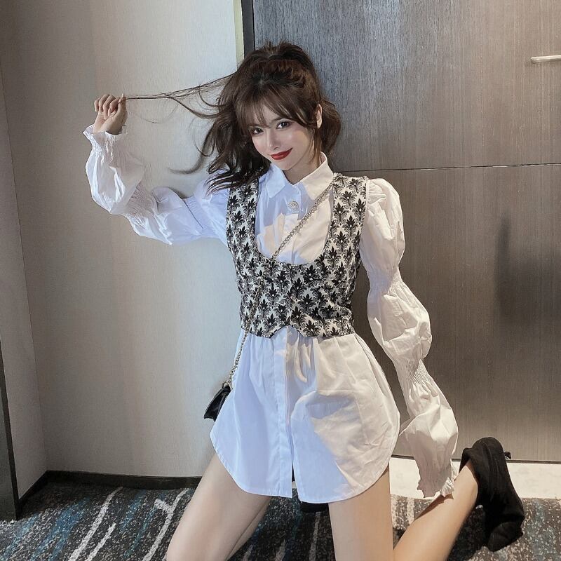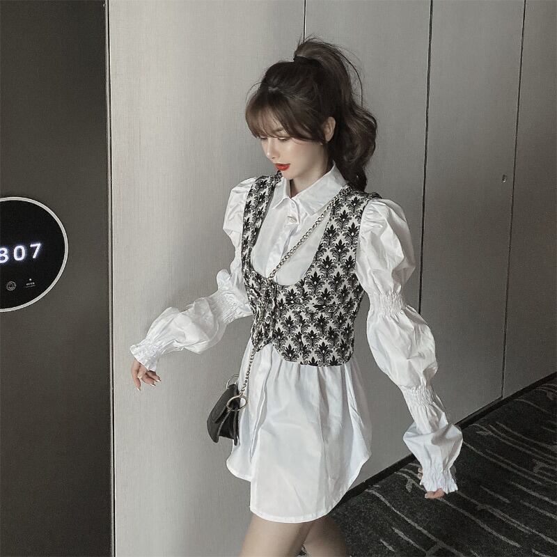 オータムスタンダードツィードウェストシャツ スカート レトロ 秋物 ハンチェンe36379726413