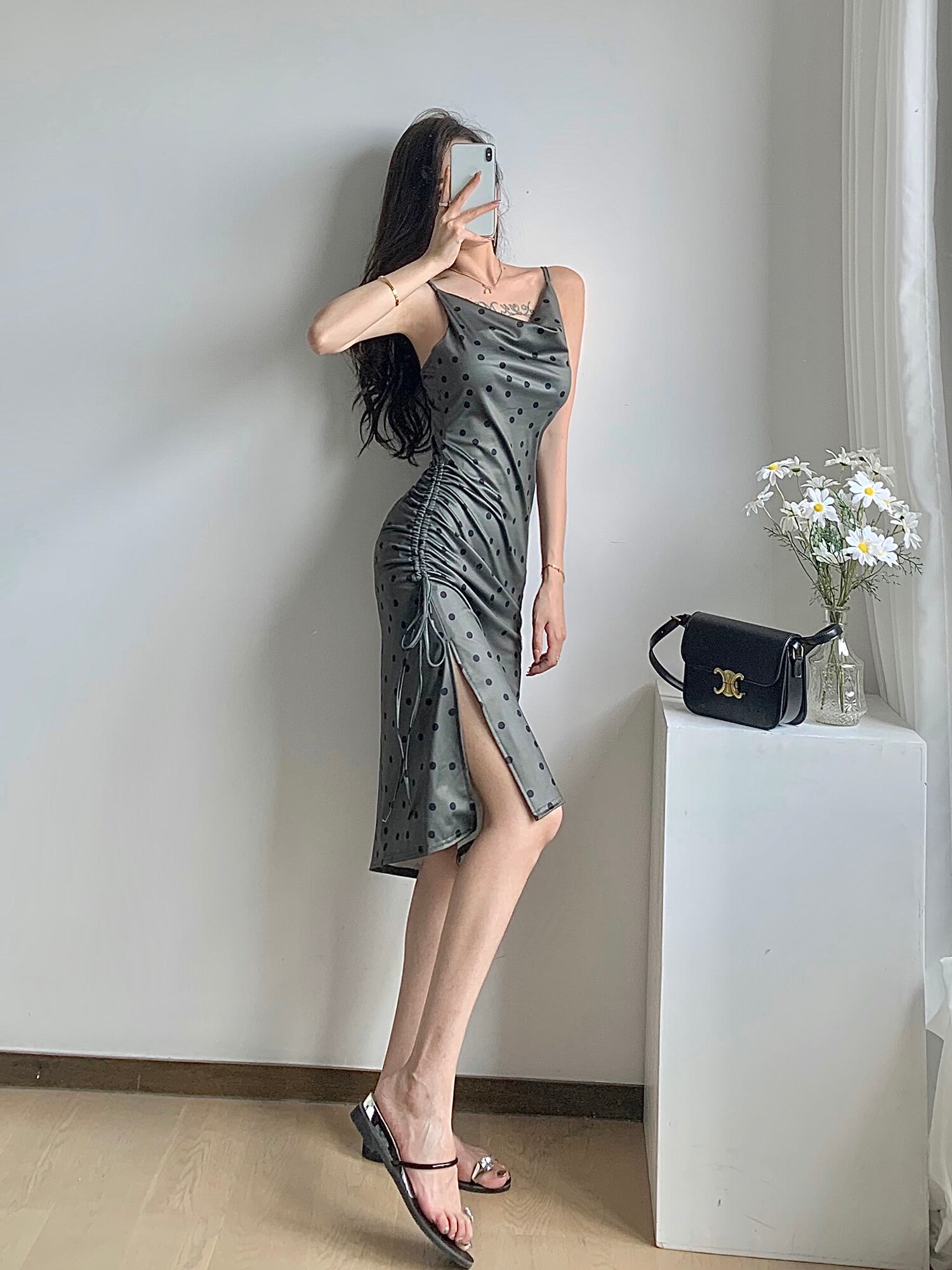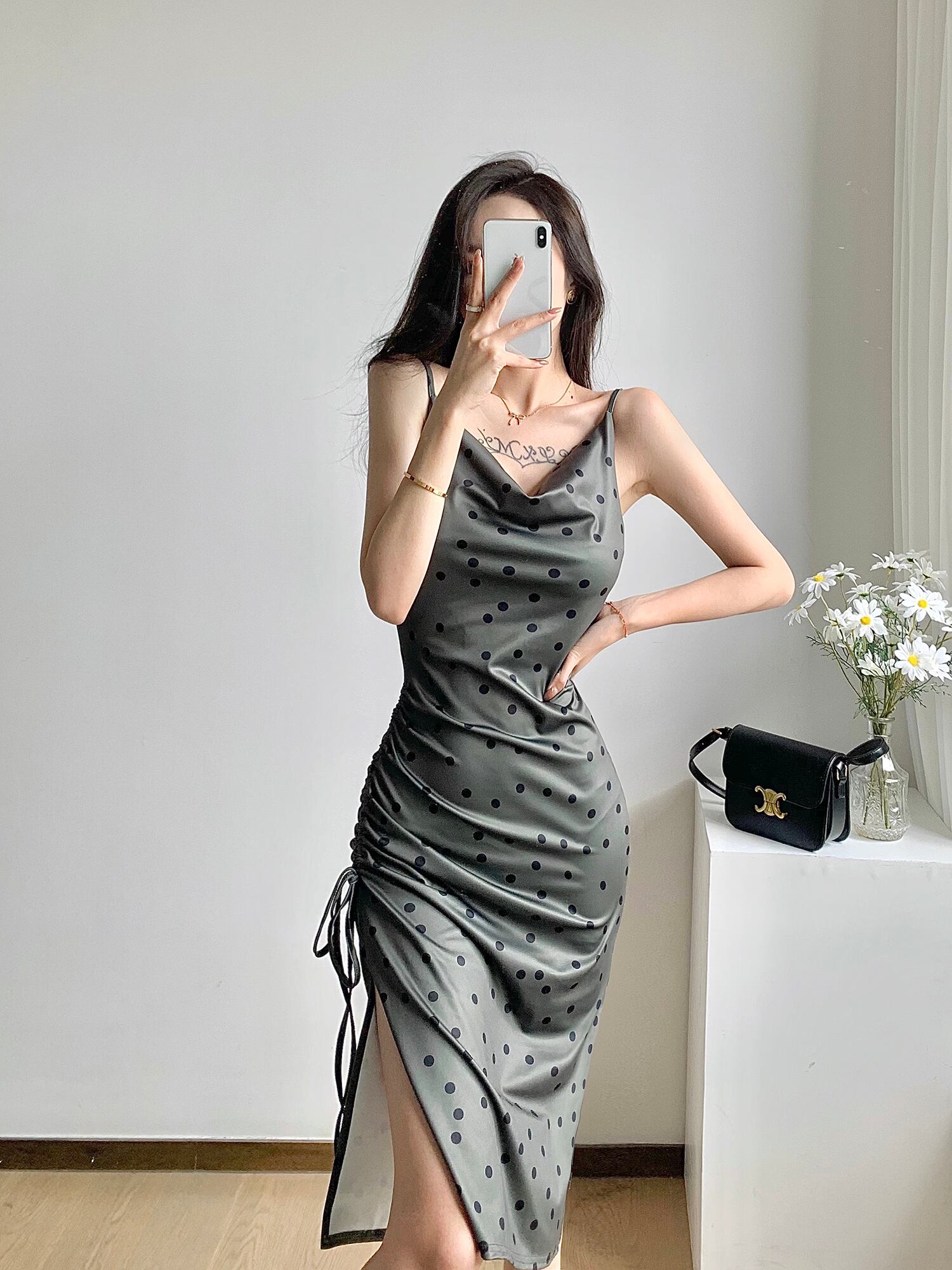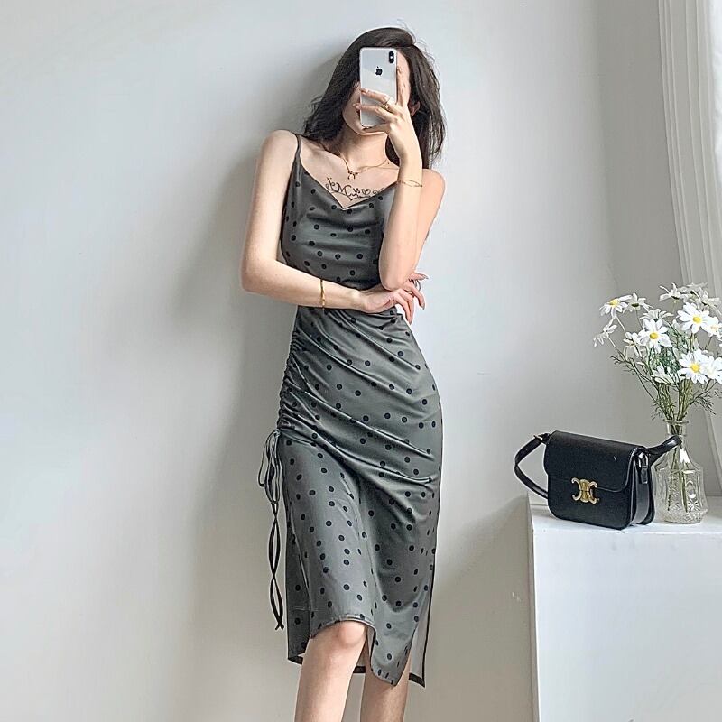 ドレス サマーVネックウェスト薄手ロングスカート 夏物 ハンチェンe25012578219