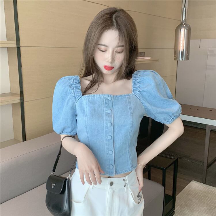 スタンダードカラーショートシャツ サマースリーブスリムブラウス レディース レトロ 夏物 スクウェア ハンチェンe58072246778