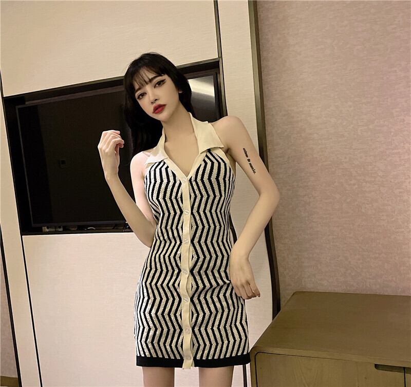 ニットスカート サマーストライプスリムドレス 夏物 スリムヒップ ハンチェンe10880683896