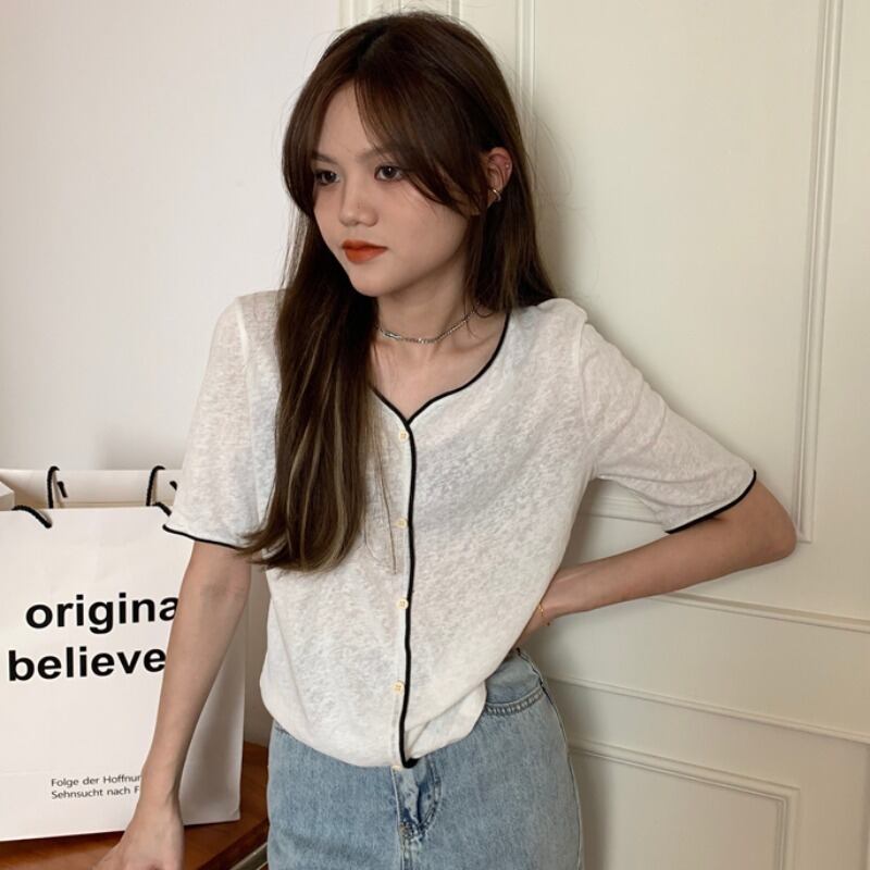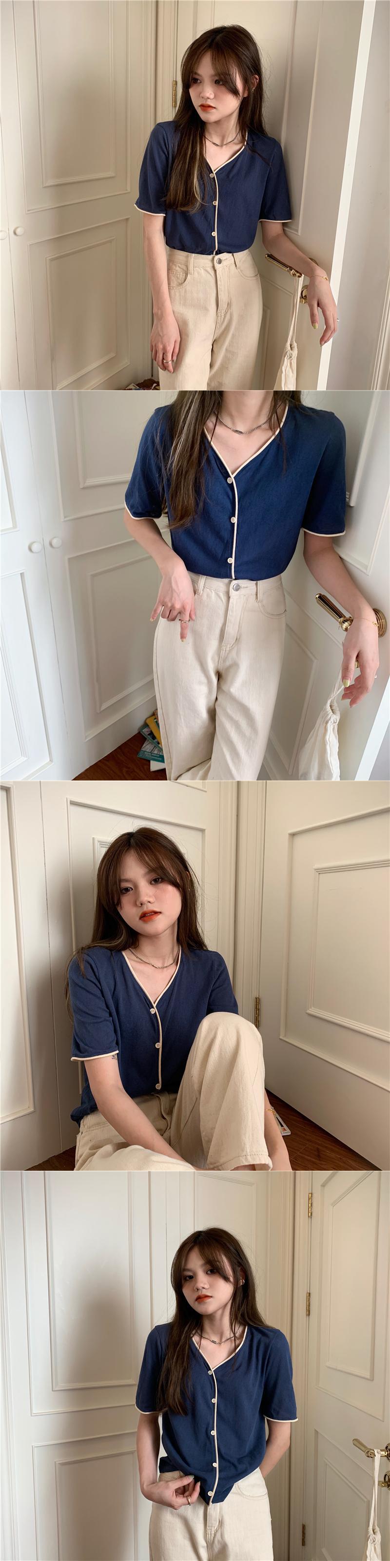 ルーズVネック薄手カーディガンTシャツ トップス ハンチェンe11787827181