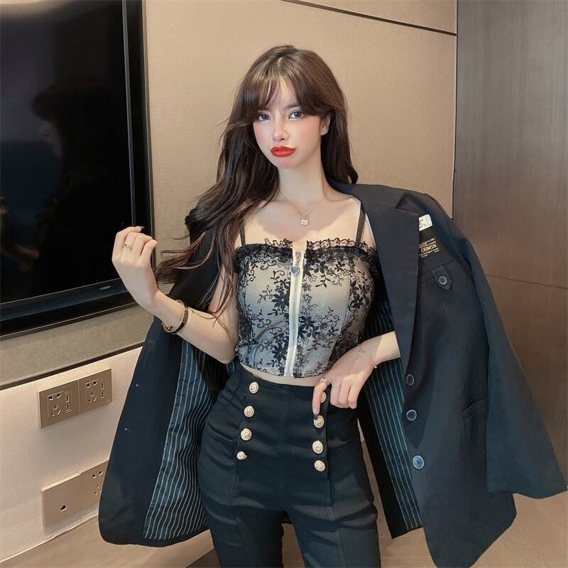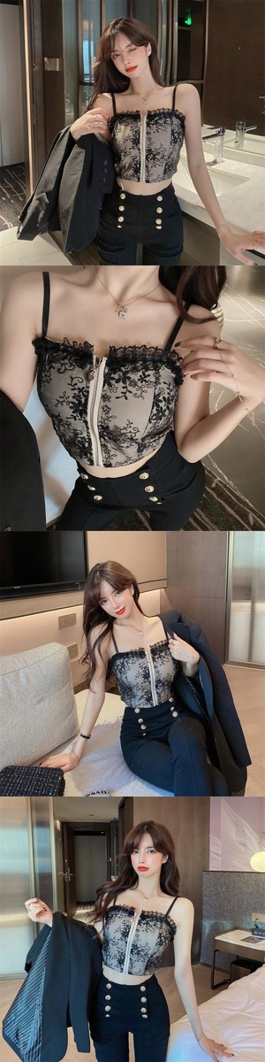 メッシュジッパーショートサマーフィットレース 大人ガーリー スウィート キュート カジュアル 夏物 ステッチ ハンチェンe50171699369