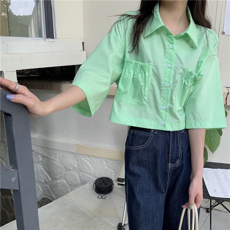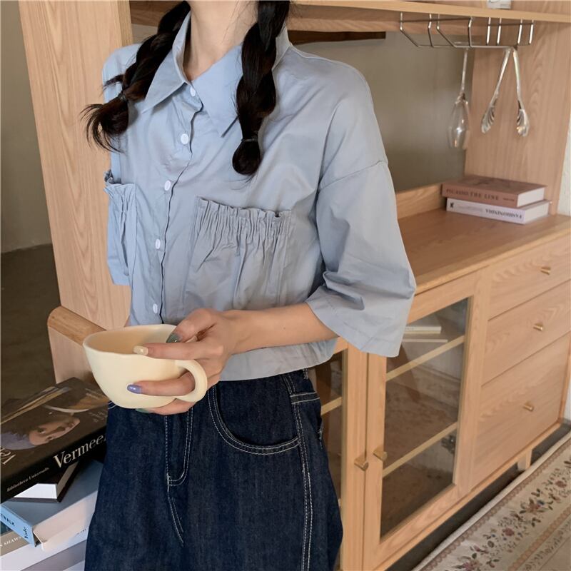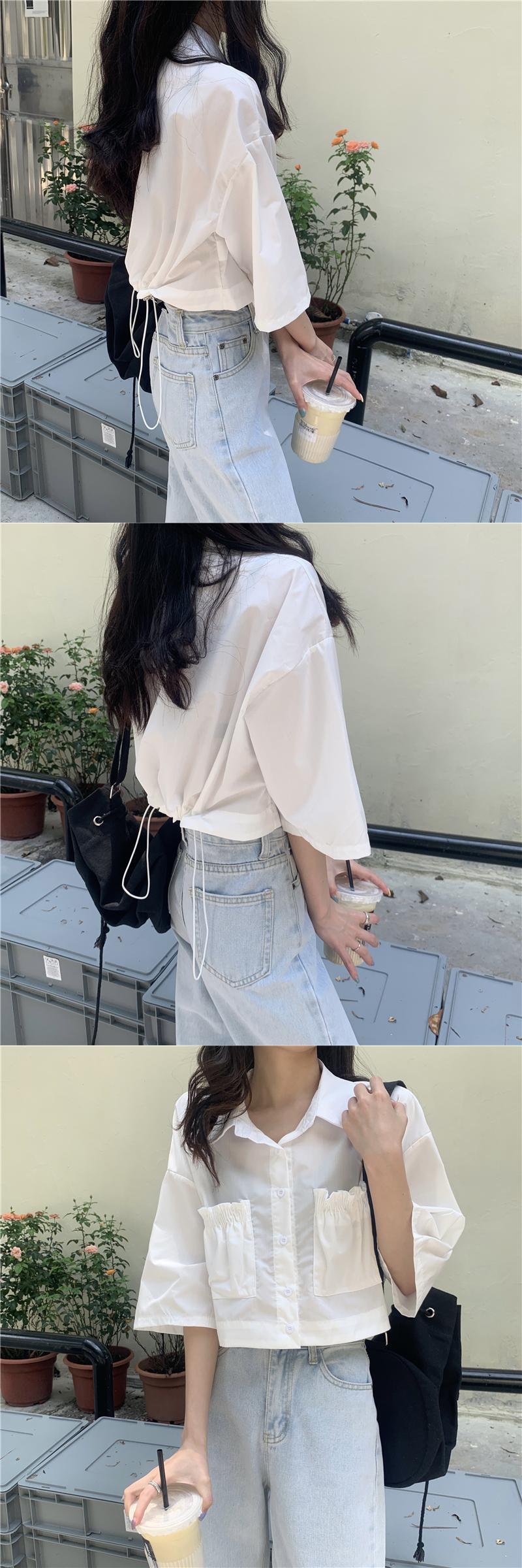 スタイルシャツ ギャザーショートルーズトップス レディース ハンチェンe9008830899
