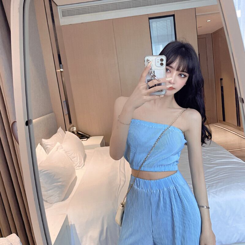 サマースタイルトップス ハイウェストウェストワイドレッグパンツ ストリート 大人ガーリー スウィート キュート カジュアル 夏物 ワイドパンツ ハンチェンe30995155372