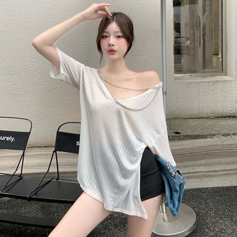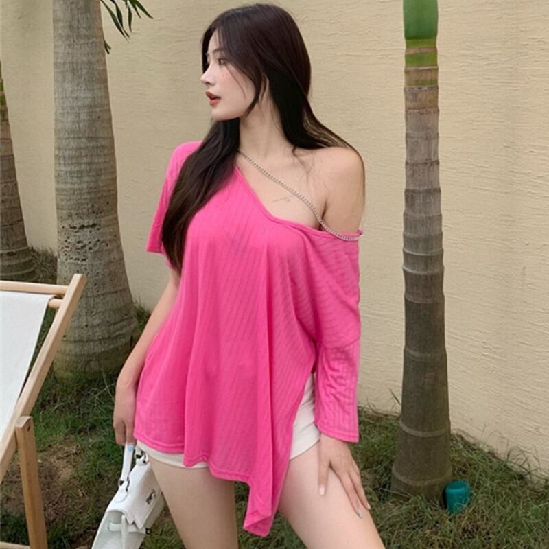 カラーレッドルーズTシャツ トップス レディース ハンチェンe57988211599