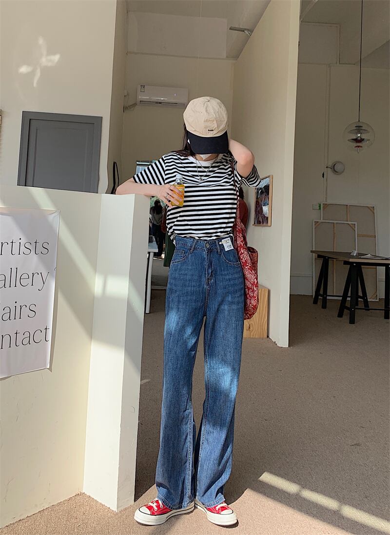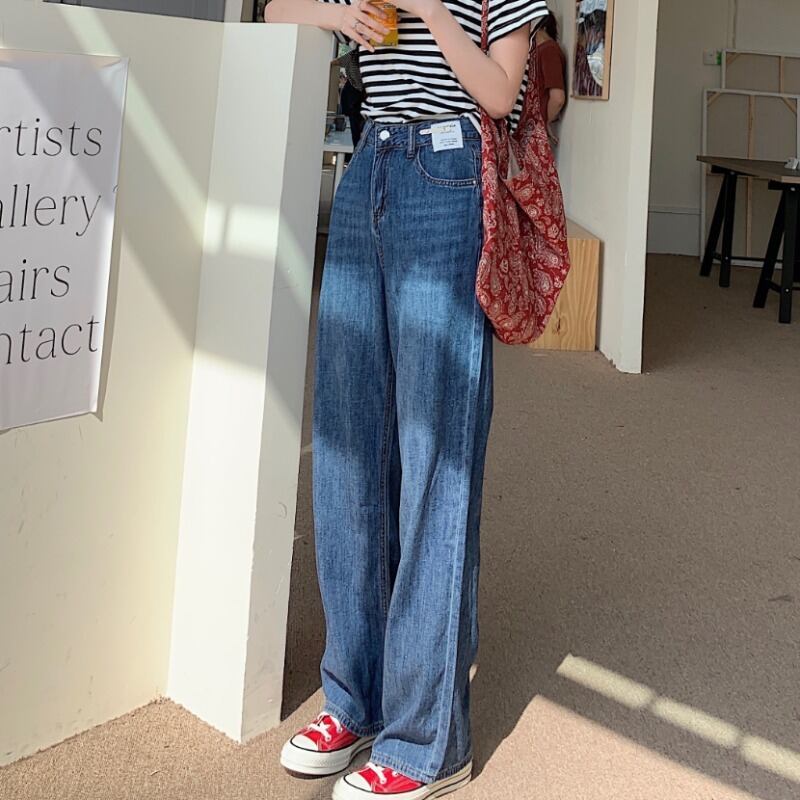 ジーンズ ウェストルーズ薄手 ワイドレッグ ワイドパンツ ハンチェンe43889855268