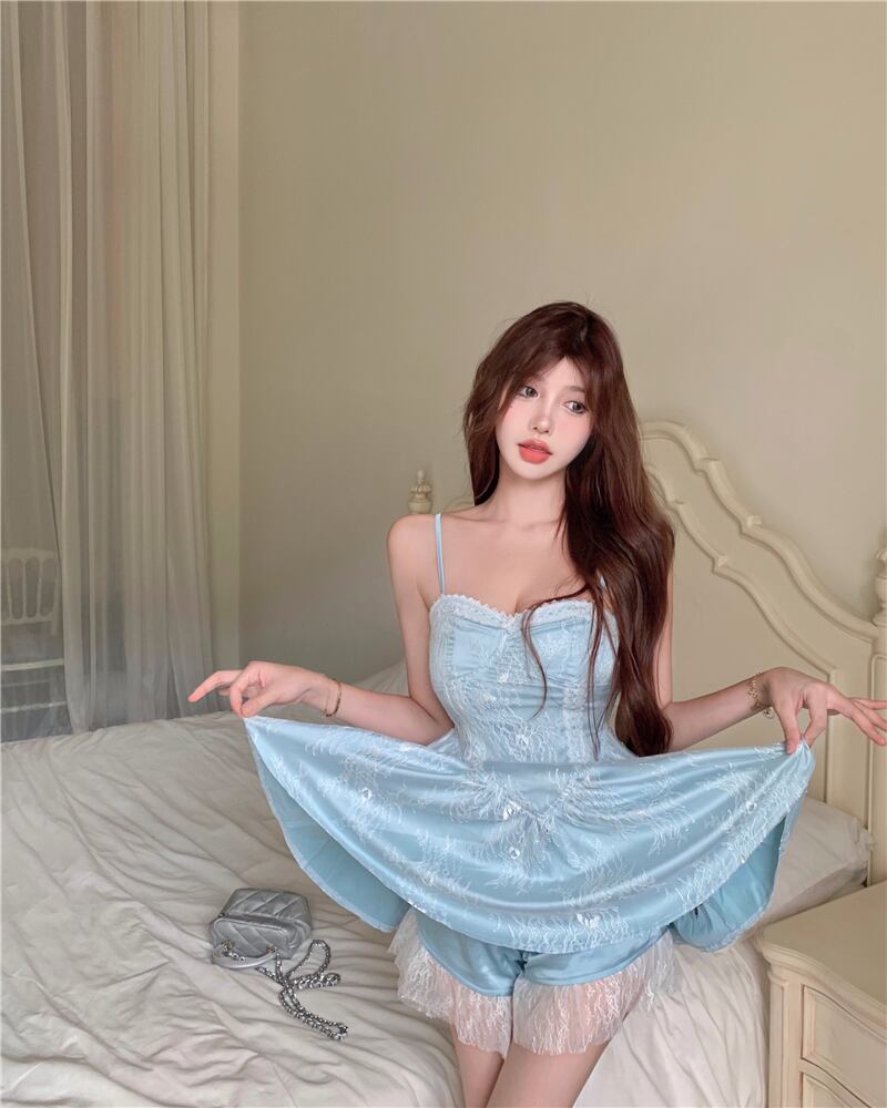 レースドレス ウェストワイドレッグショーツ エレガント ブルマー ワイドパンツ ステッチ ハンチェンe77767845326