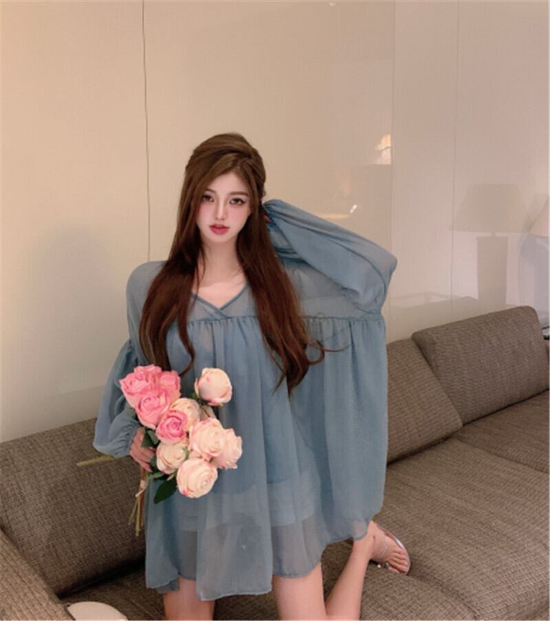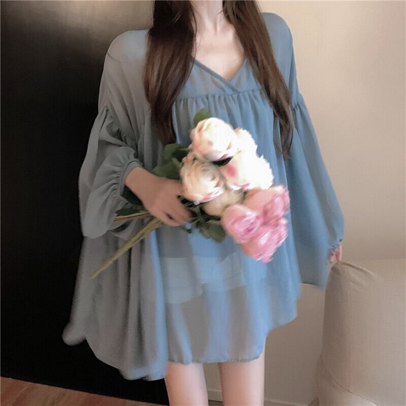 薄手シフォンシャツ Vネックブラウス レディース ロング ハンチェンe75129178583