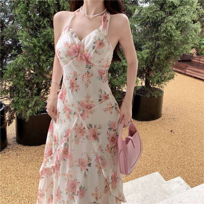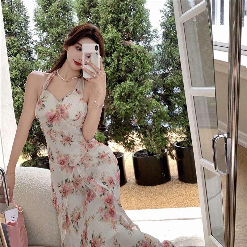 スタイルプリントミディスカート シフォンホルタードレス ピュア ハンチェンe92149145883