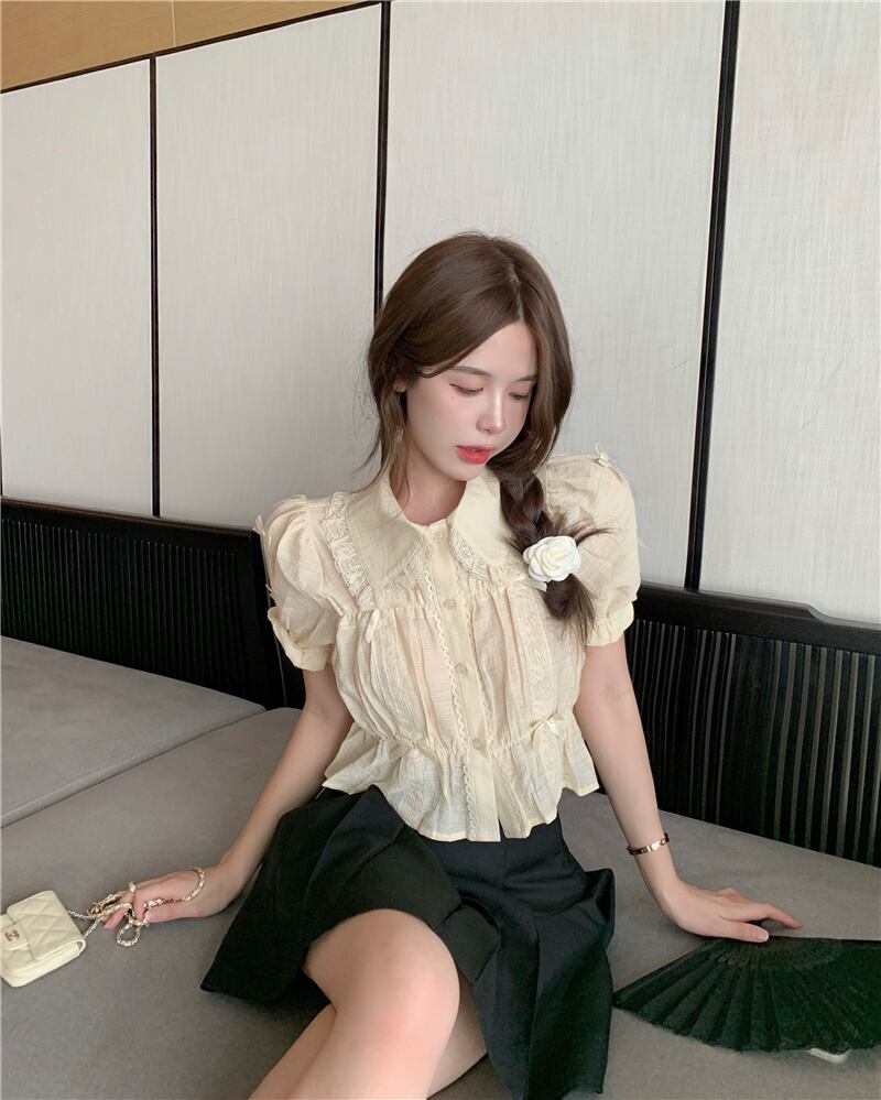 スタイルスタンダードレースカラースリーブショートシャツ トップス レディース レトロ ハンチェンe69715239743