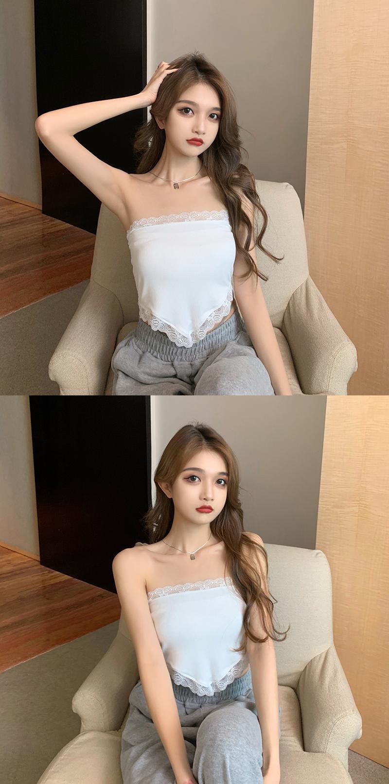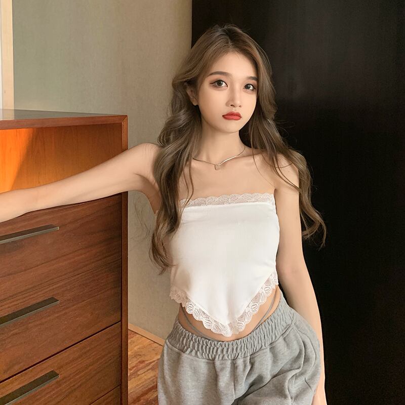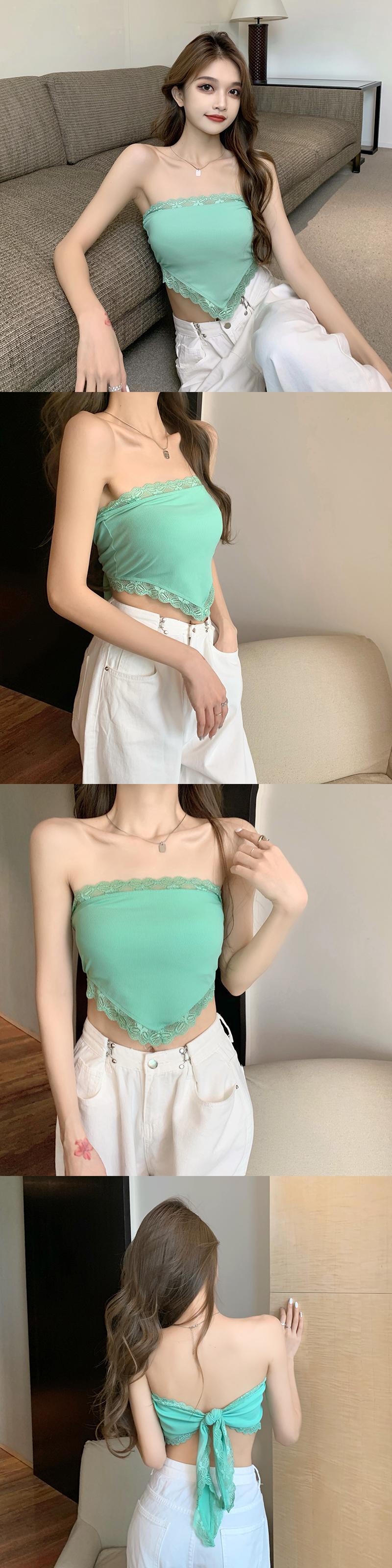 レーストライアングルスカーフ サマーバックトップス ショート 夏物 ハンチェンe71860155770