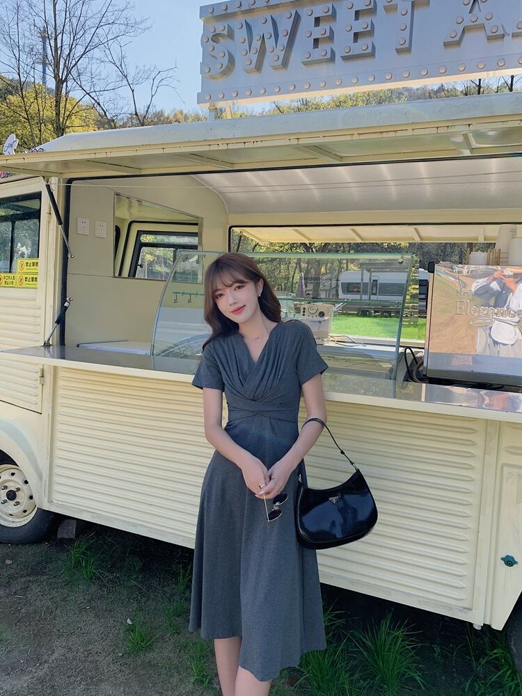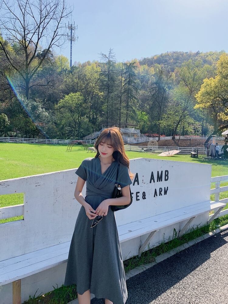 サマースタイルVネックウェストドレス 夏物 フラワーデザイン ハンチェンe55055445288