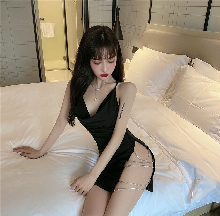 ブラックドレス サマーVネックスリム 夏物 ハンチェンe93370529471
