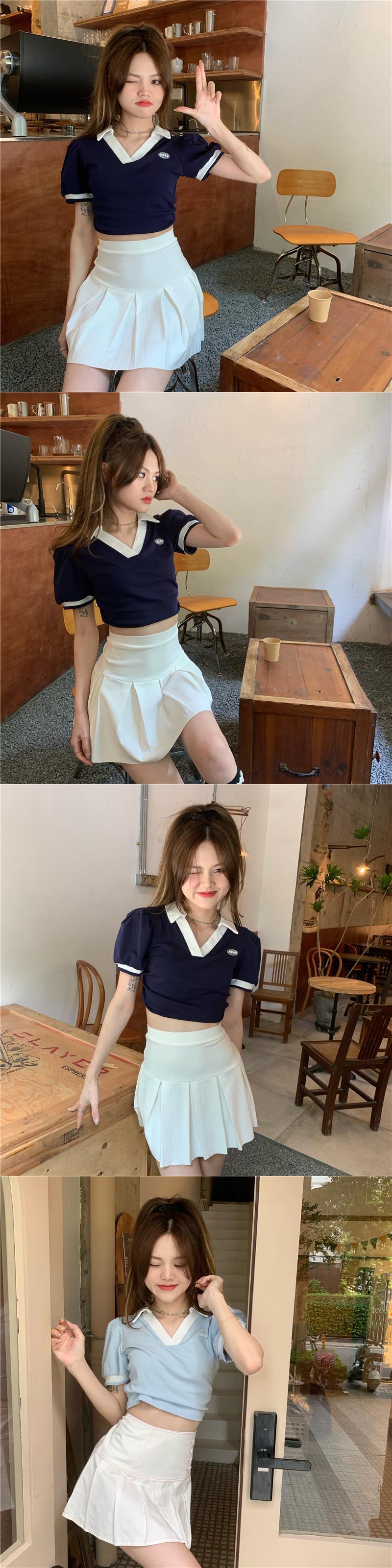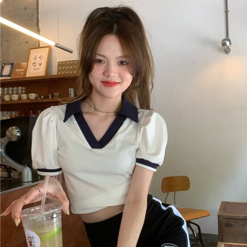 スタンダードスリーブトップス VネックカラースリムTシャツ レディース ランタンスリーブ レトロ ハンチェンe63700409904