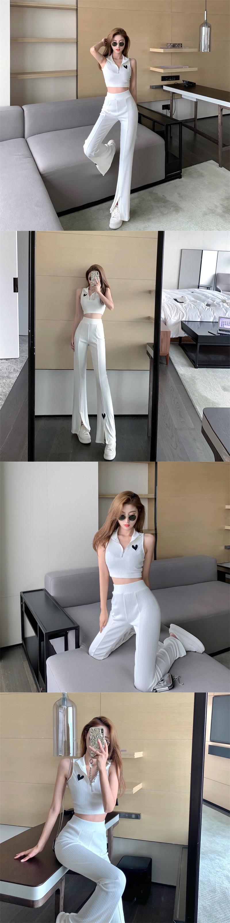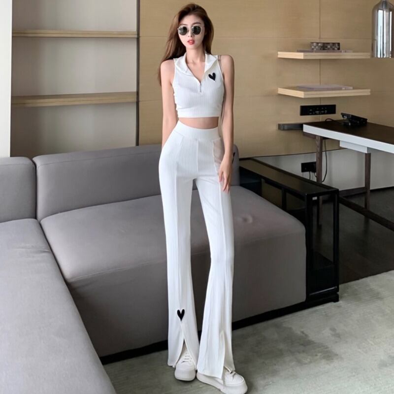 Vネックショートトップス ハイウェストウェストカジュアルパンツ レッド ストリート ハンチェンe93946042938