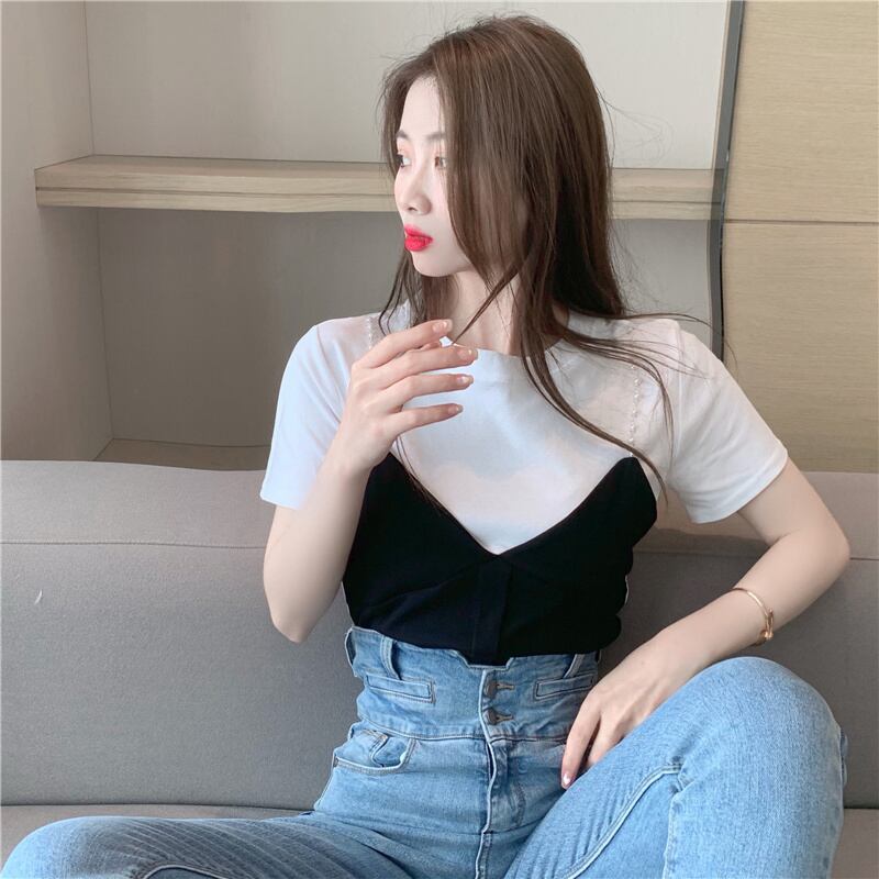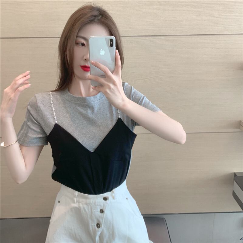 サマースタンダード薄手Tシャツ トップス レディース レトロ 夏物 ハンチェンe90855010151