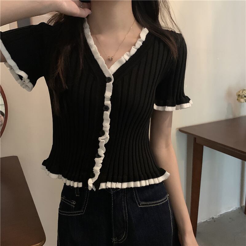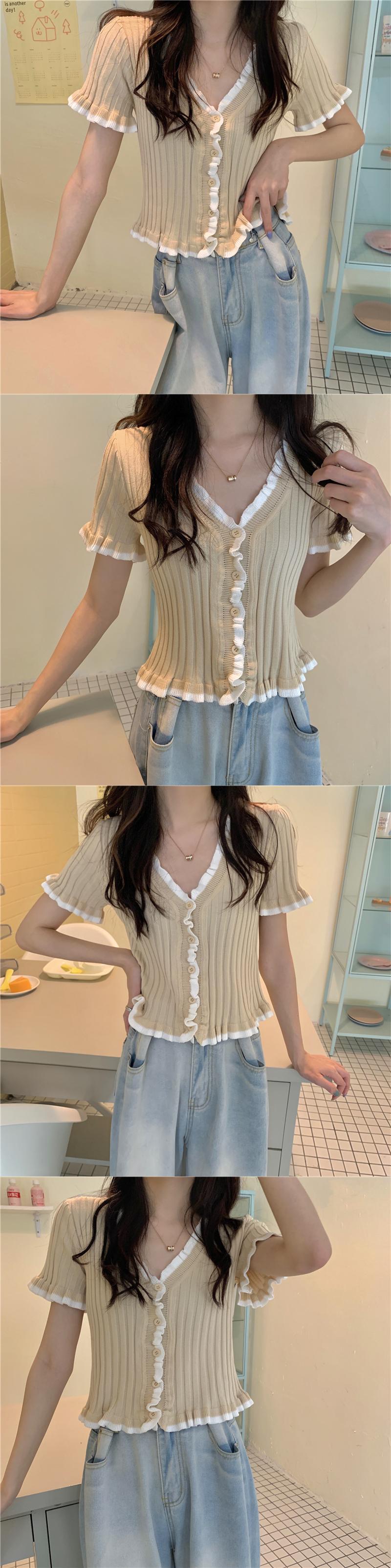 サマースタイルカラーVネックショートカーディガンセーター 夏物 ハンチェンe54756022245