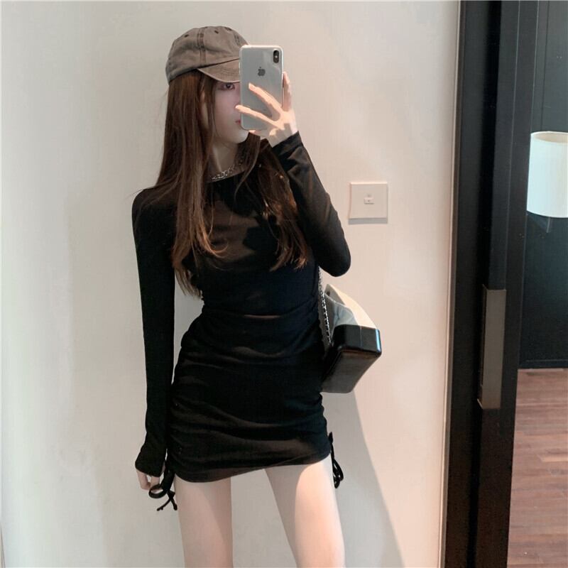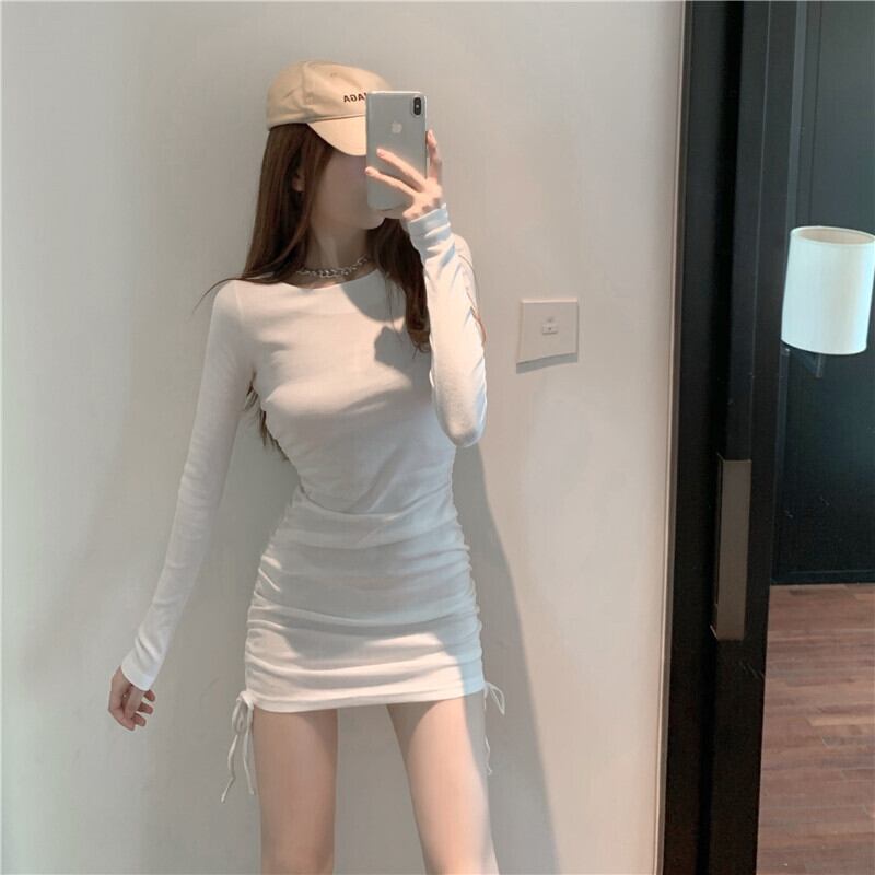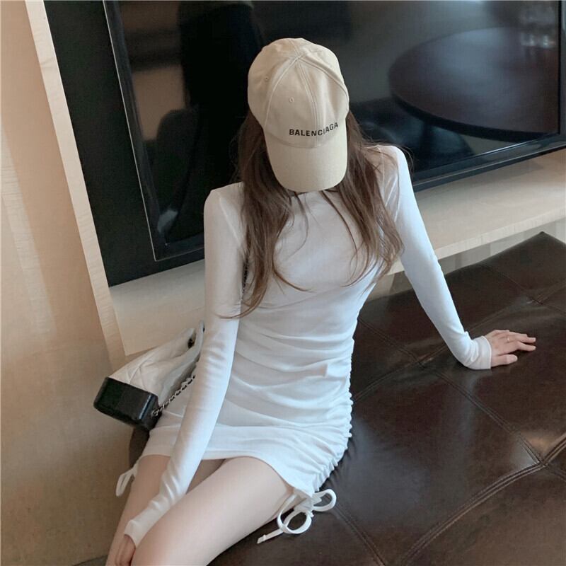 オータムドレス ギャザースカート スリム薄手 秋物 ハンチェンe17091423289