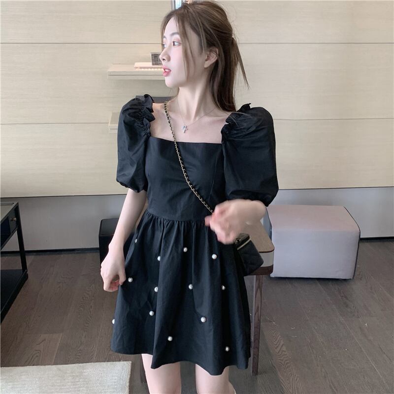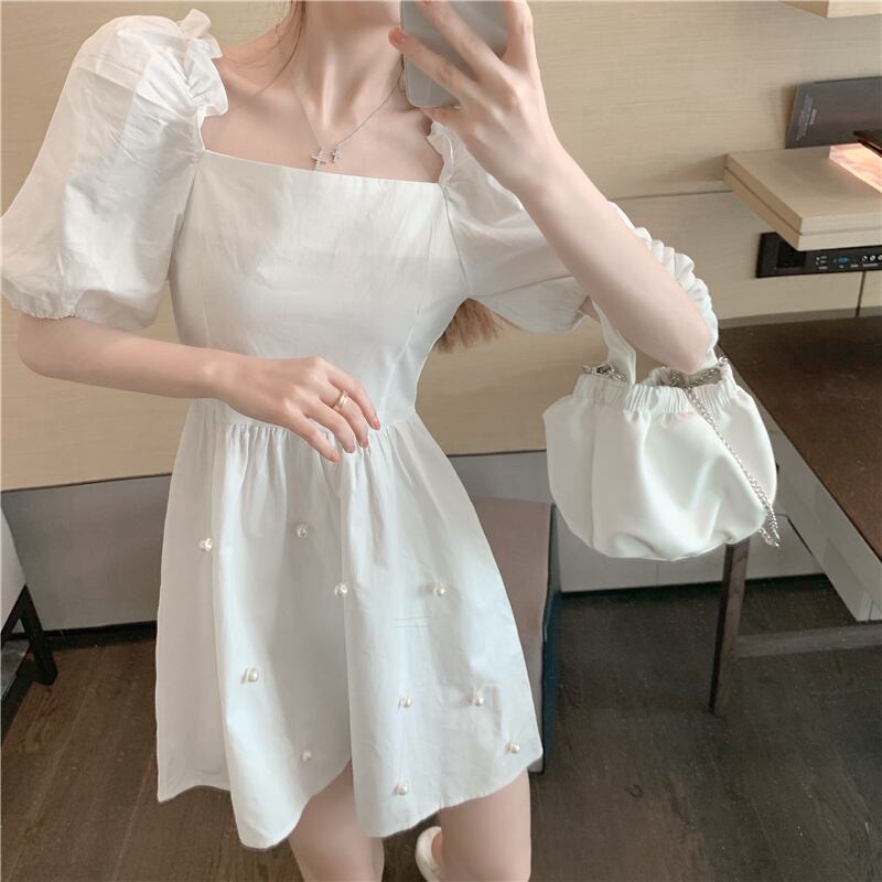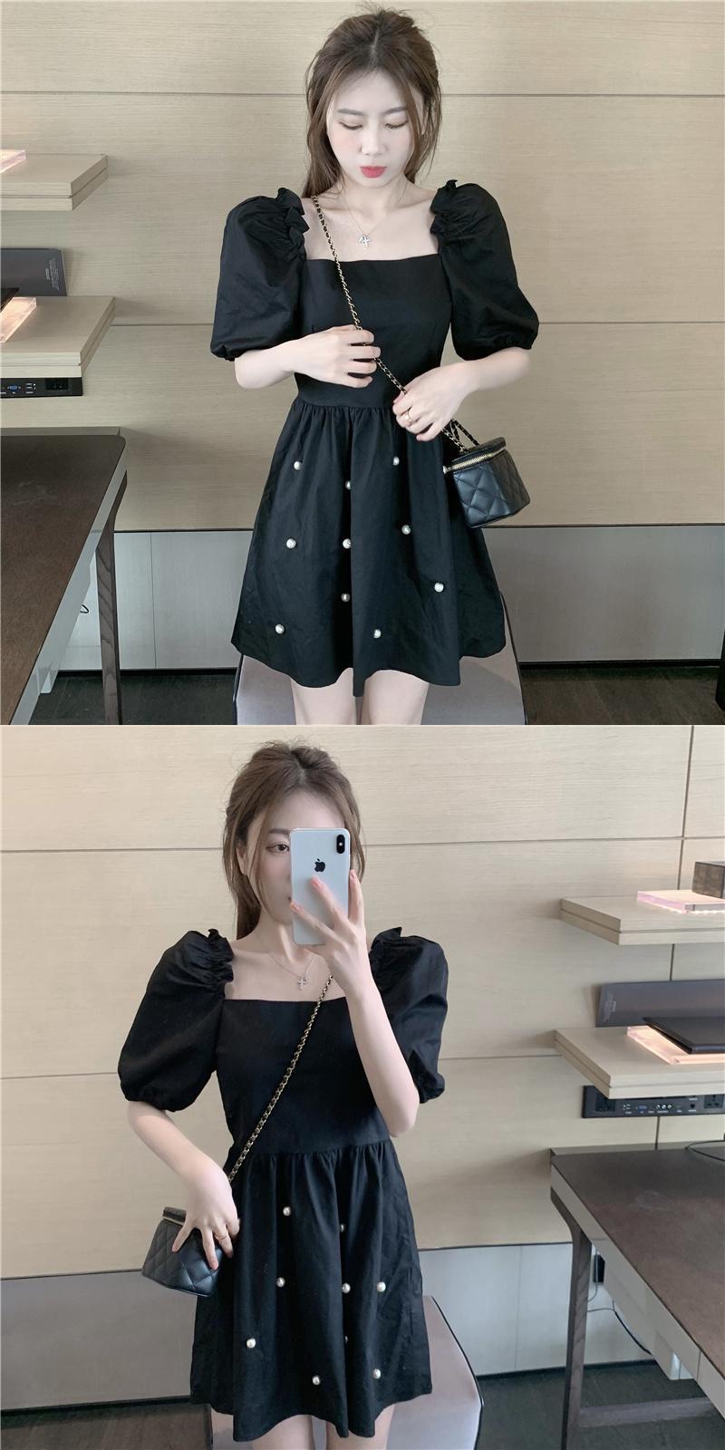 ショートスカート サマースリーブウェストスリムドレス 夏物 スクウェア ハンチェンe2390470491