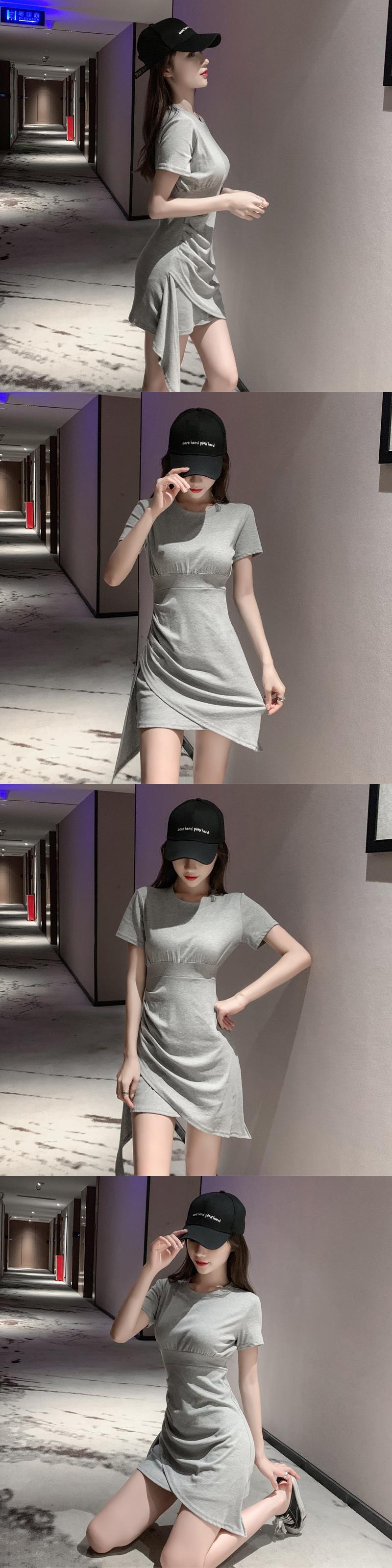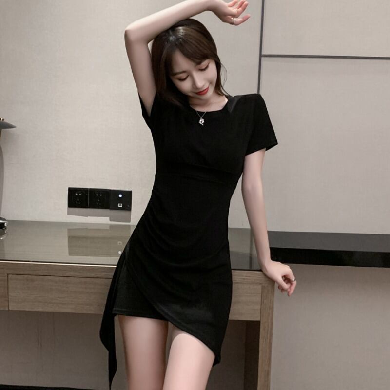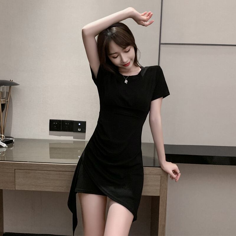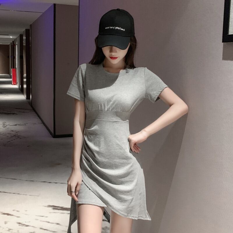 ドレス サマースタイルラウンドネック半袖スリーブウェスト薄手スカート ショート ハーフスリーブ 夏物 Oネック ハンチェンe76996892226