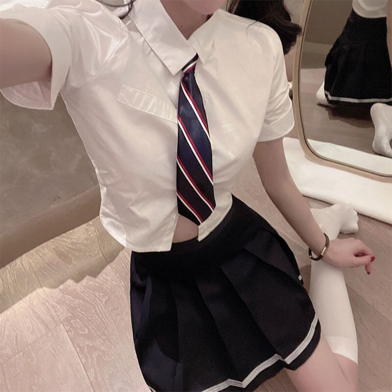 スタイルサマーショートシャツ ハイウェストウェストプリーツスカート 夏物 ハンチェンe905315586