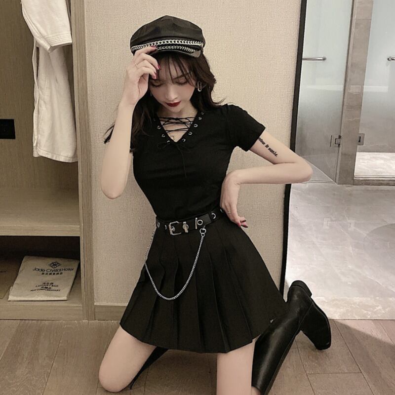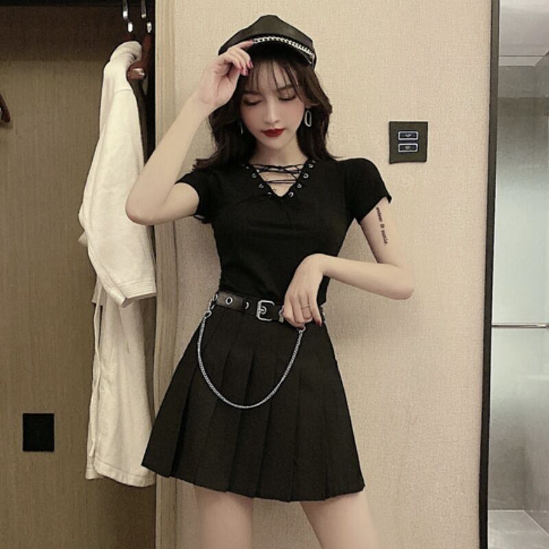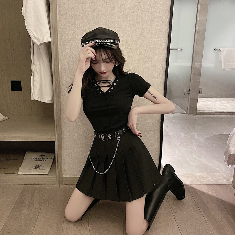 色:ブラックT,ブラックTショートスカートツーピーススーツ,革の事実価格