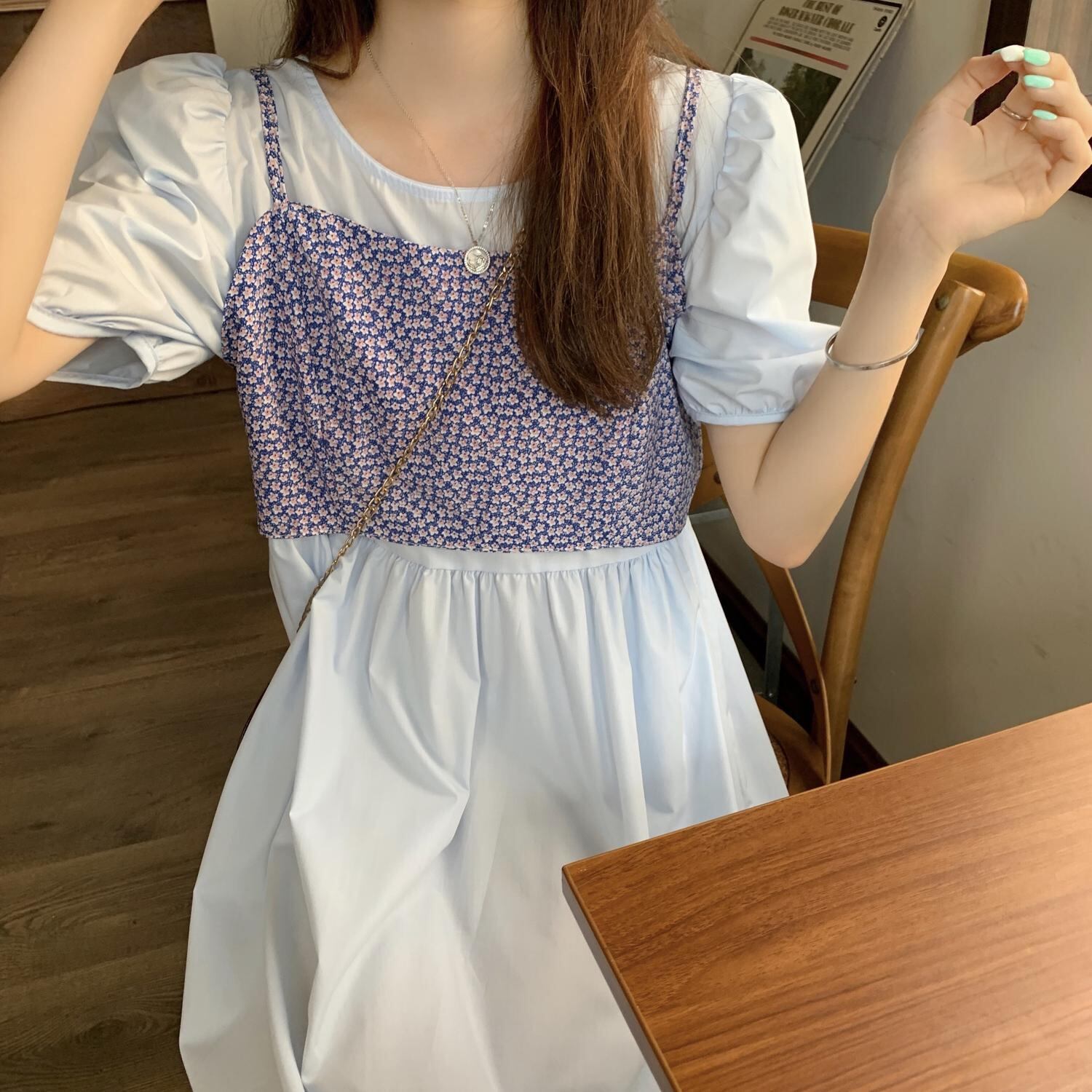 スタイルサマースリーブドレス フローラルトップス 夏物 花柄 ハンチェンe13979934565