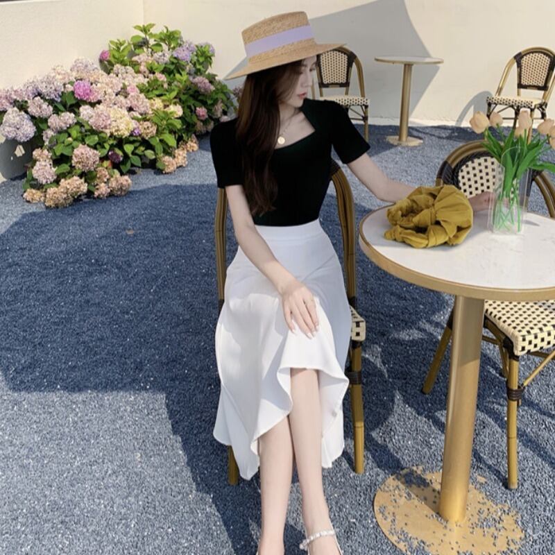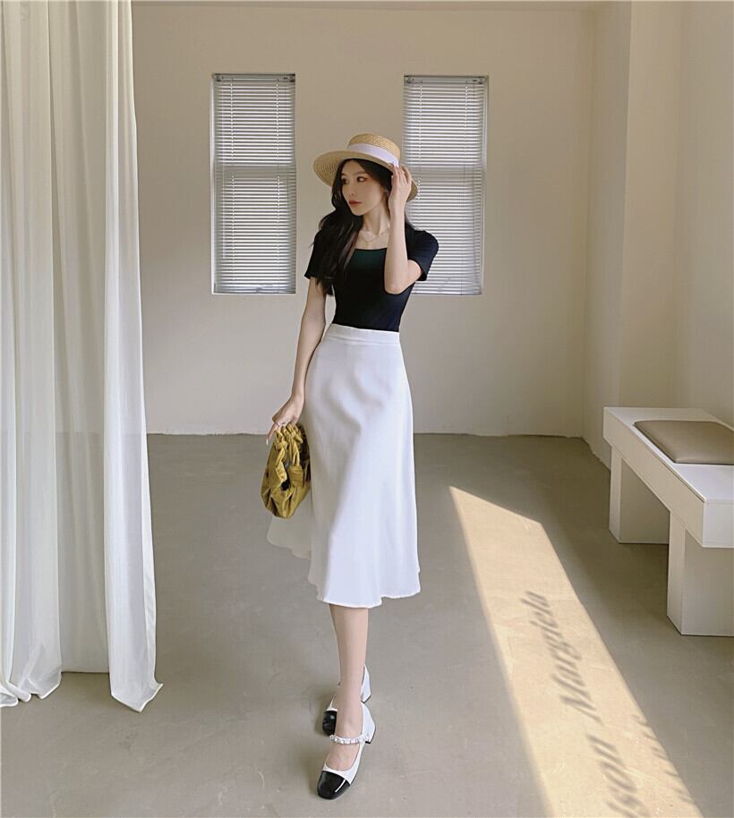 Tシャツ ブラウス ハイウェストウェストスリムスカート ハンチェンe52696256555