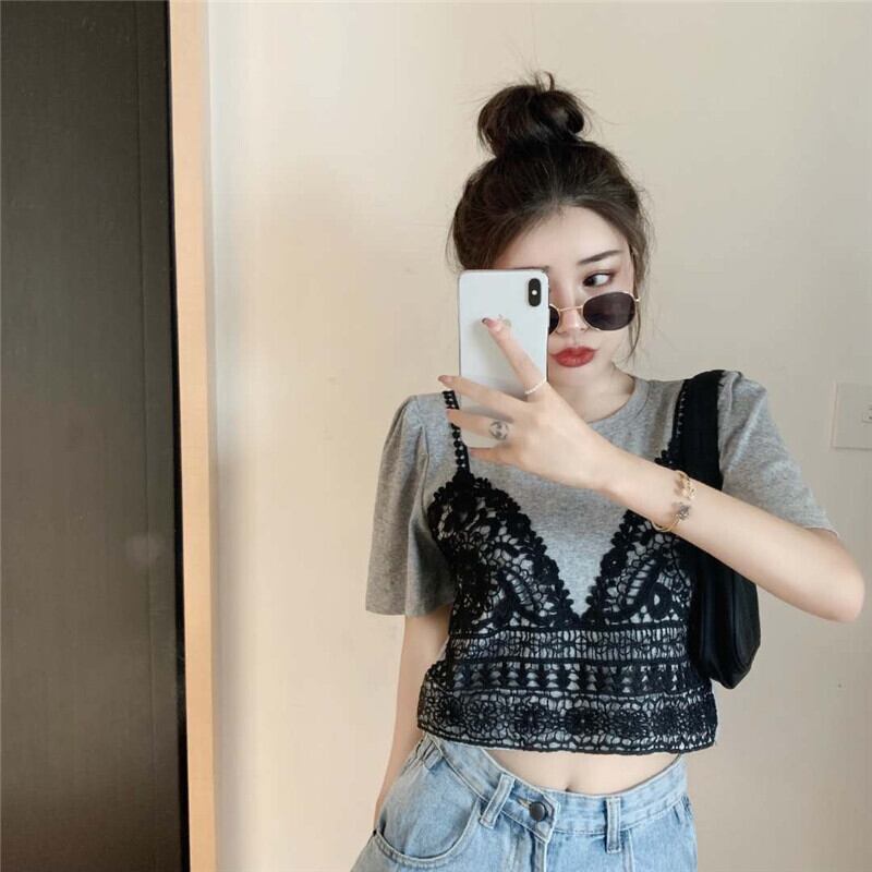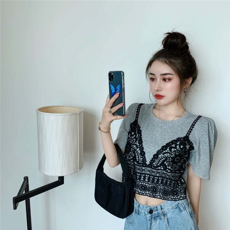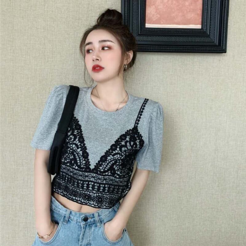 サマーレーススリーブショートTシャツ トップス レディース 夏物 ステッチ ハンチェンe12324037458