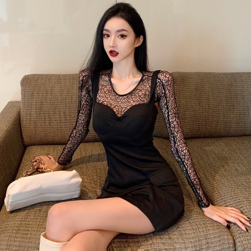 スタイルオータムレースシャツ スリムAラインドレス 秋物 ハンチェンe26762119331