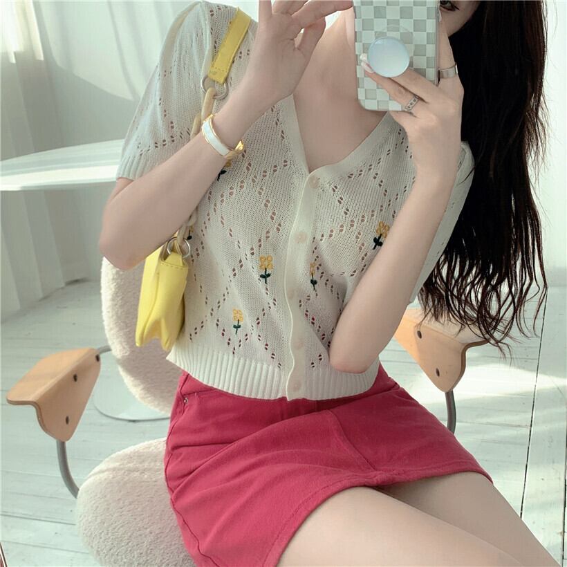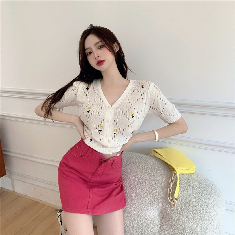 スタイルVネックショートニットカーディガントップス レディース ハンチェンe3545545020