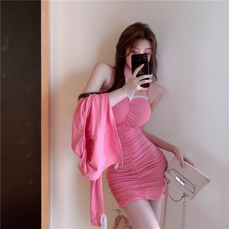 色:ピンクのカーディガン,ピンクのスカート,グリーンカーディガン,緑のスカート