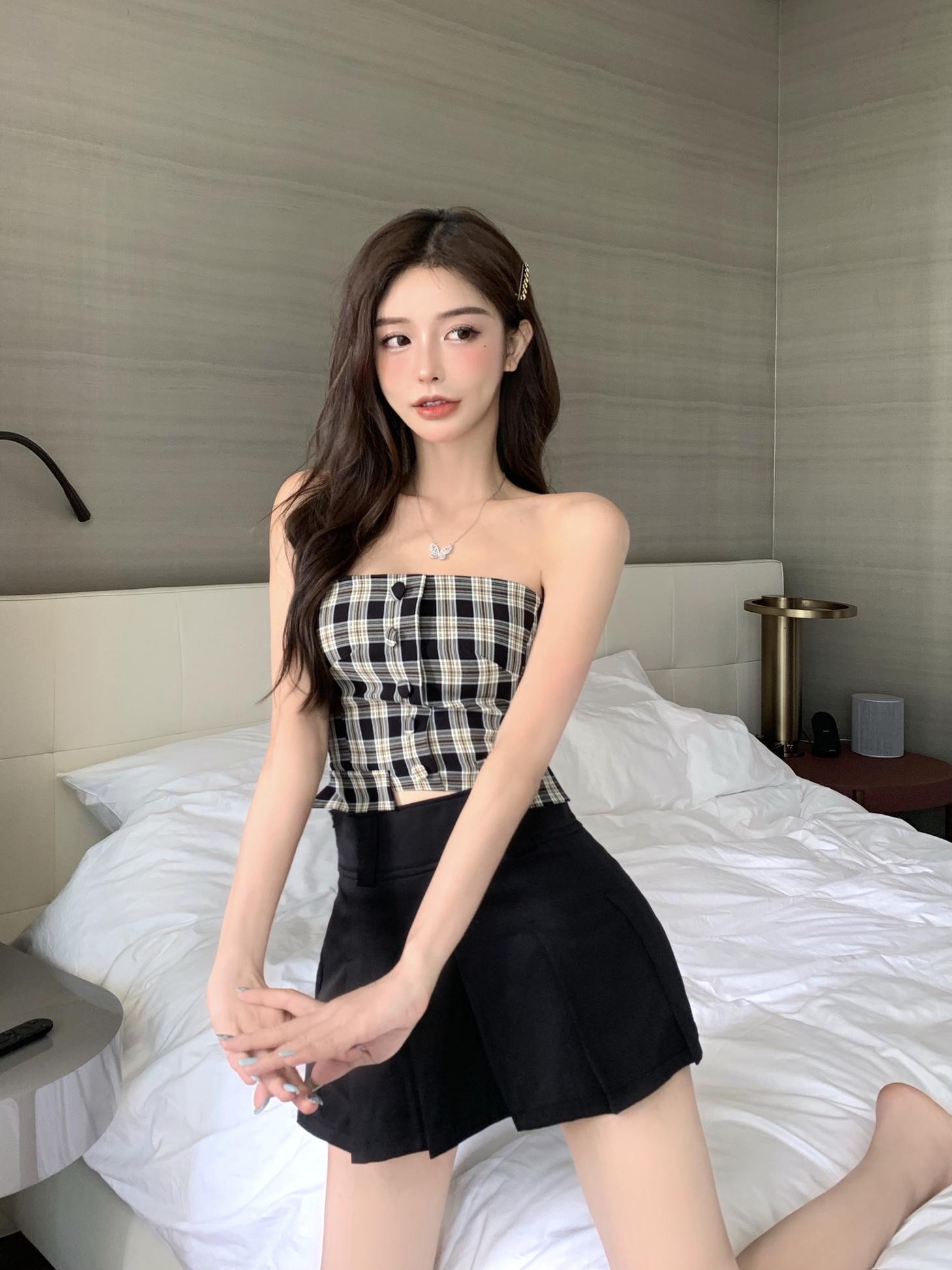 スタンダードトップス 格子柄ウェストショートレディース レトロ ハンチェンe53982921759