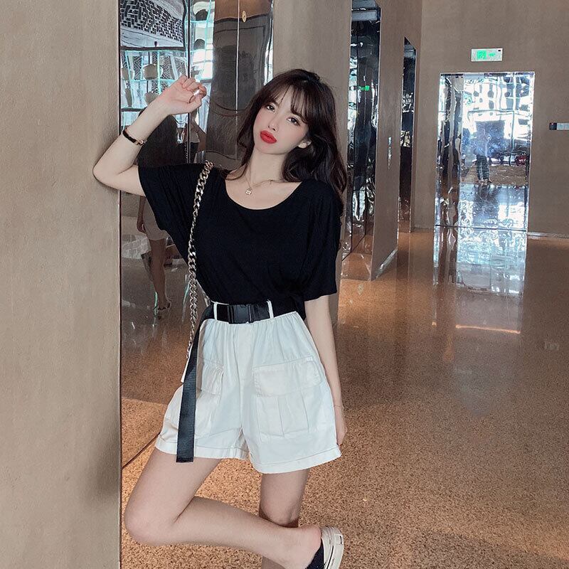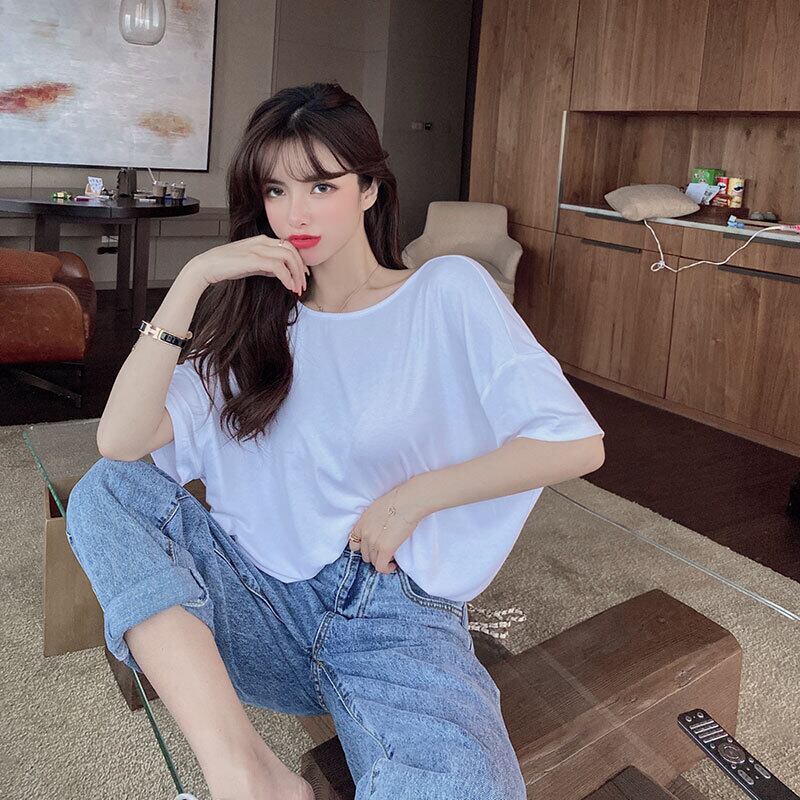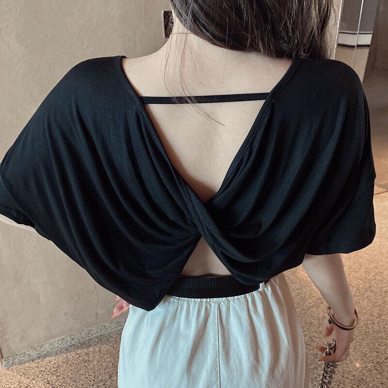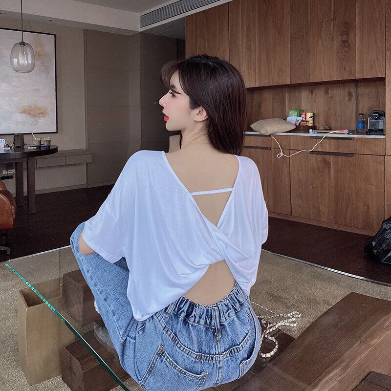 バックレスショートTシャツ ルーズトップス ハンチェンe61430225487
