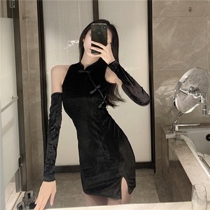 ショートスカート オータムスタンダードドレス レトロ 秋物 ハンチェンe64615718992