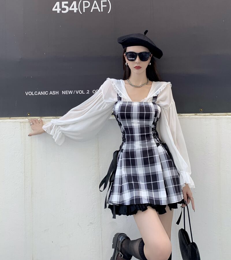スタイルオータムシャツ 格子柄ドレス スカート パンツ 秋物 ハンチェンe58752118285