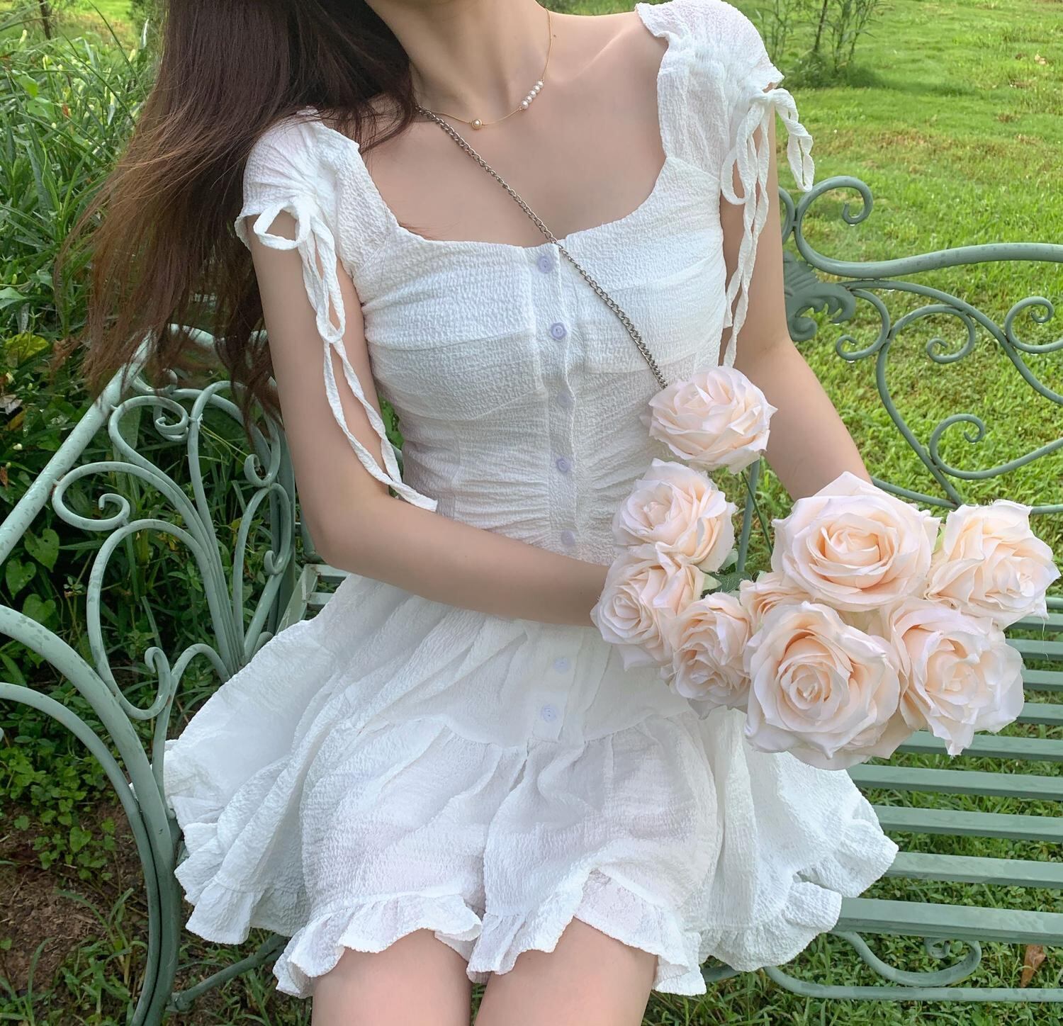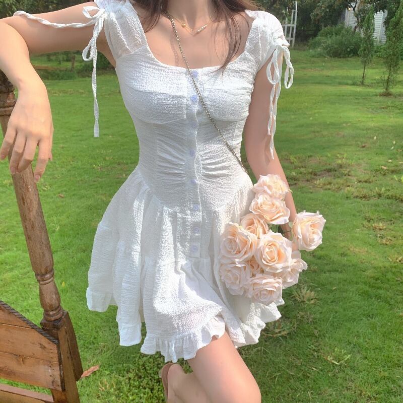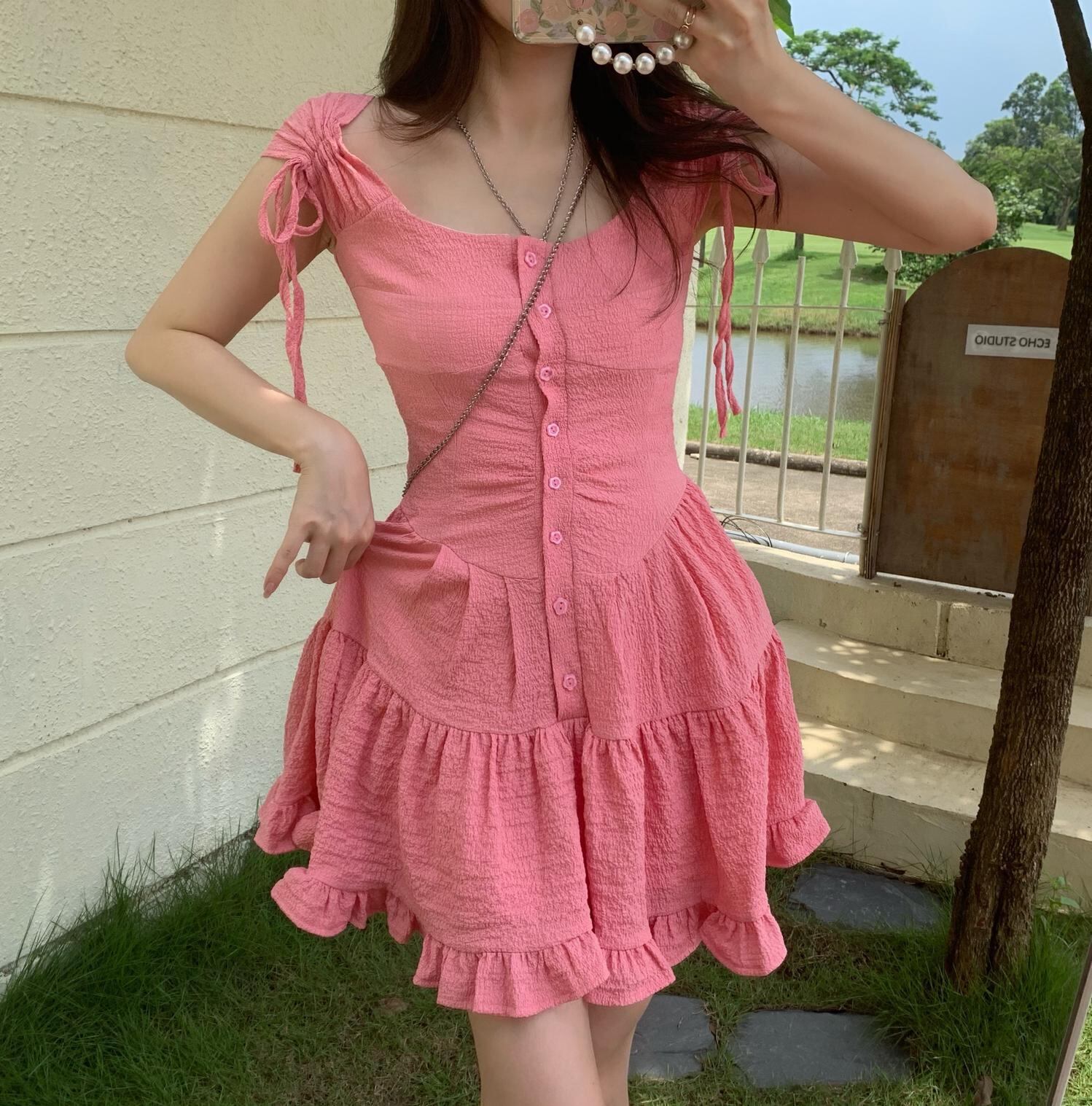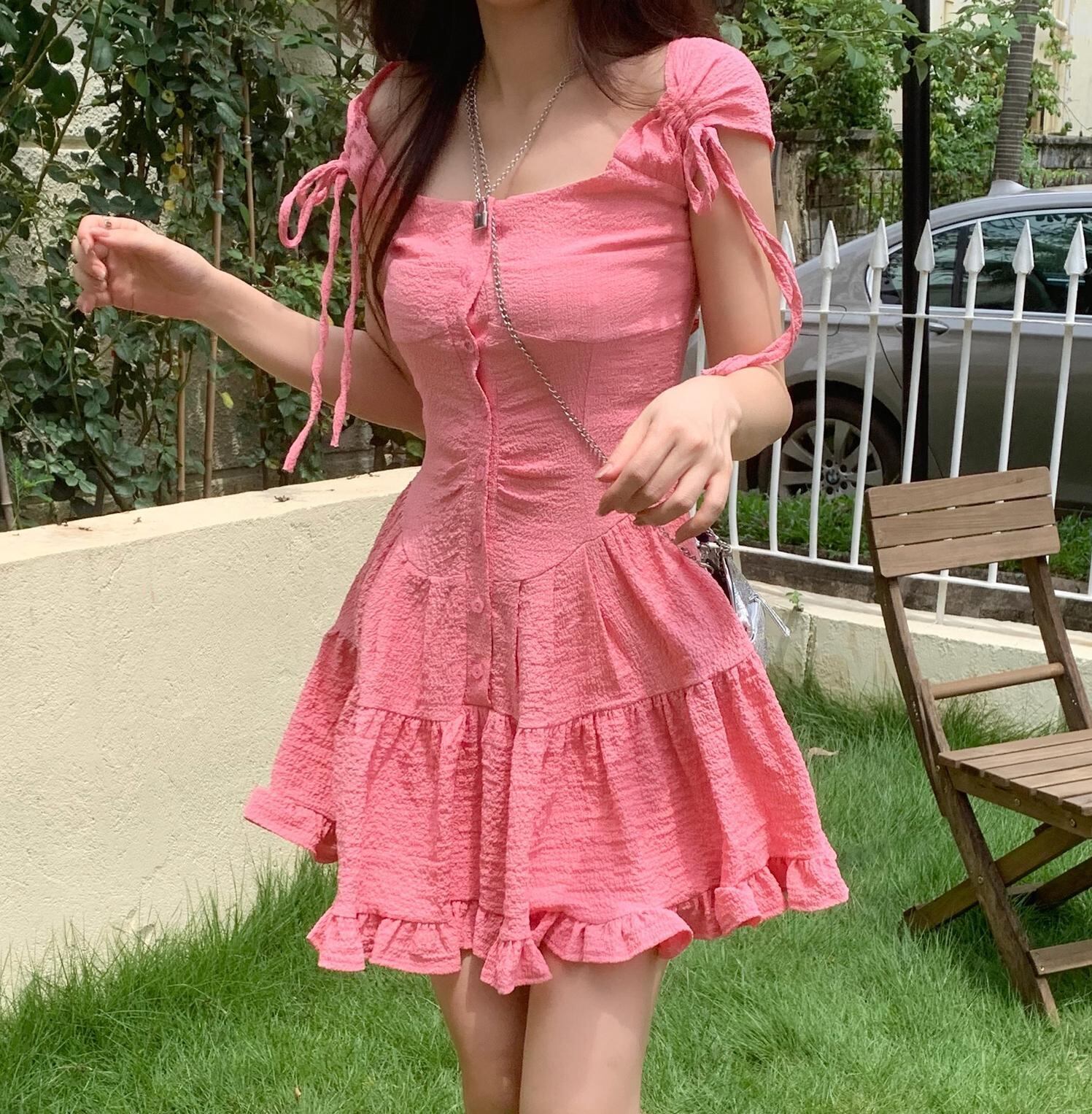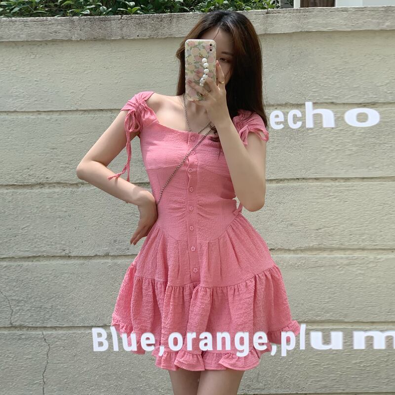 ウェストAラインショートスカート カラー半袖スリーブドレス ハーフスリーブ フラワーデザイン スクウェア ハンチェンe98319661532