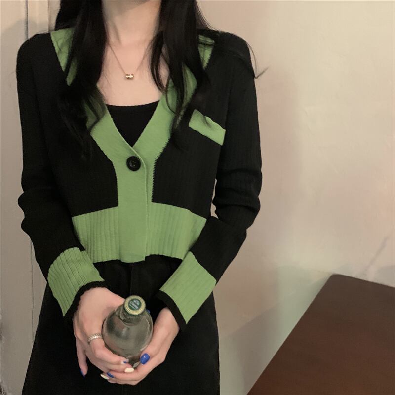 スタンダードカラーニットカーディガンオータムスタイルショートコート ジャケット ロング レトロ 秋物 ハンチェンe27256126312