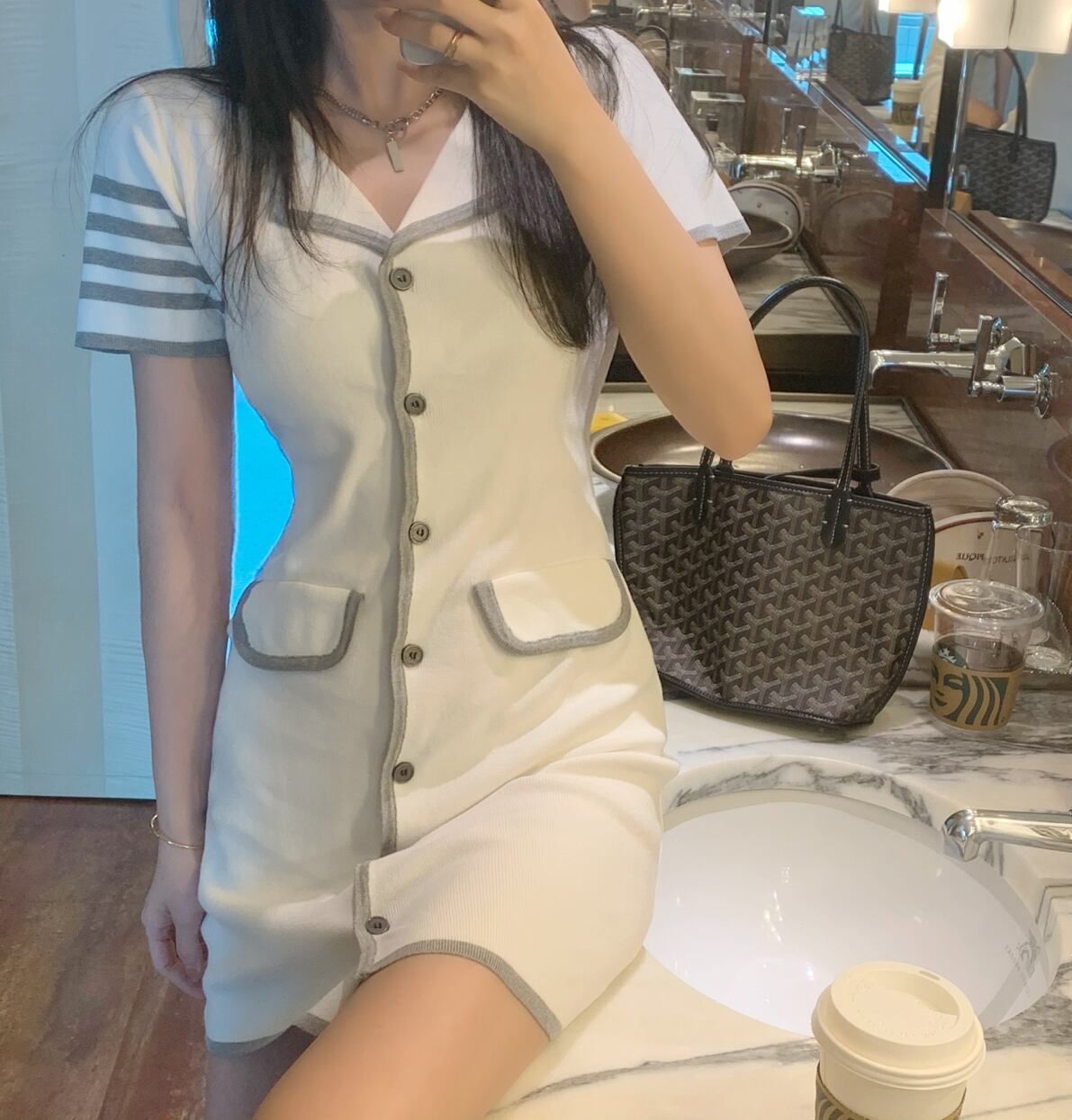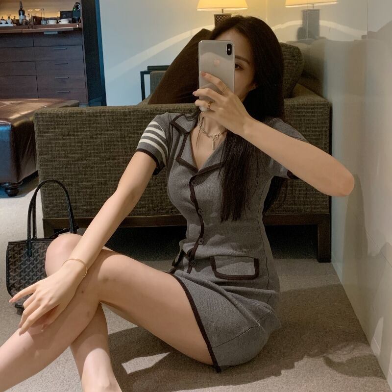 スタンダードストライプスカート ショートニットスリムドレス レディース レトロ ハンチェンe55345419456