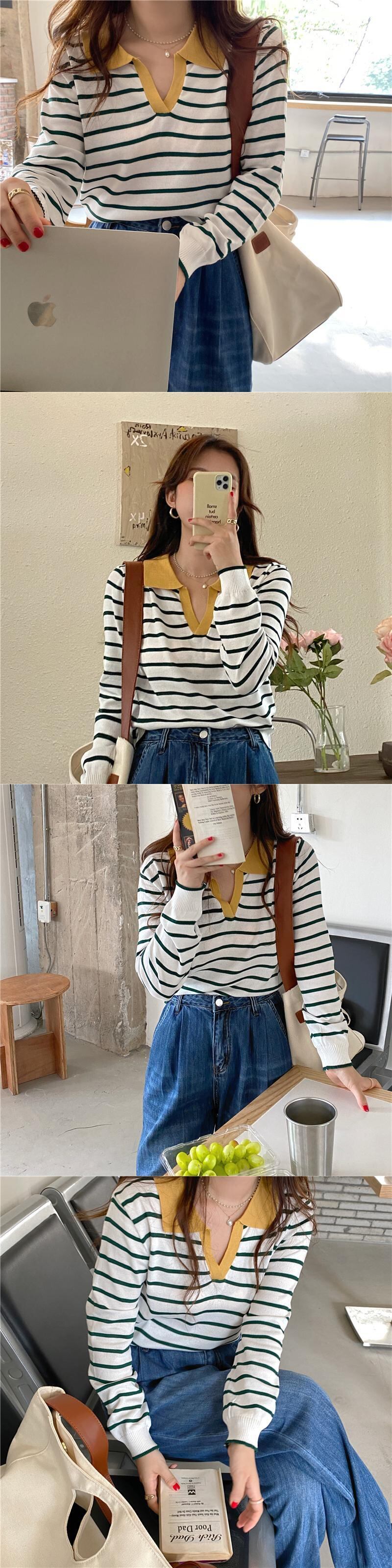 スタイルストライプニットセーター オータムカラー薄手トップス レディース ロング 秋物 ハンチェンe12642007814