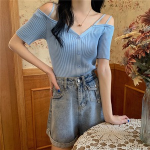 スタイルVネックニットカーディガントップス レディース オフショルダー ハンチェンe51789110964