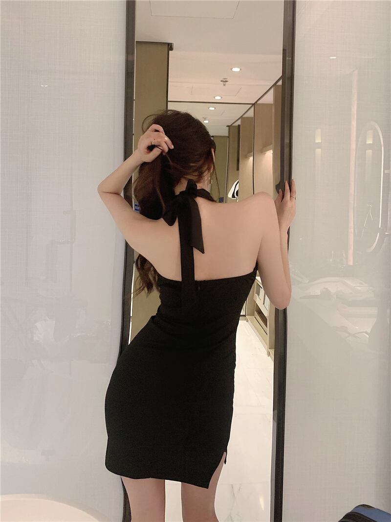 トップス ウェストブラックドレス ストラップレスホルター ピュア ハンチェンe53822992884