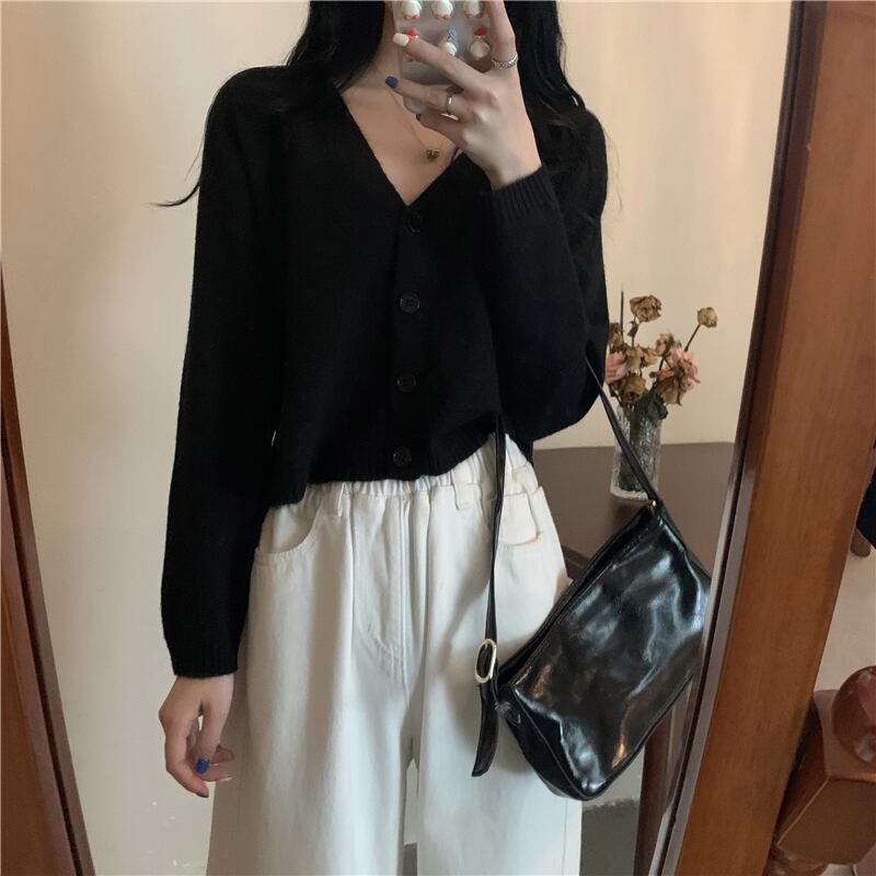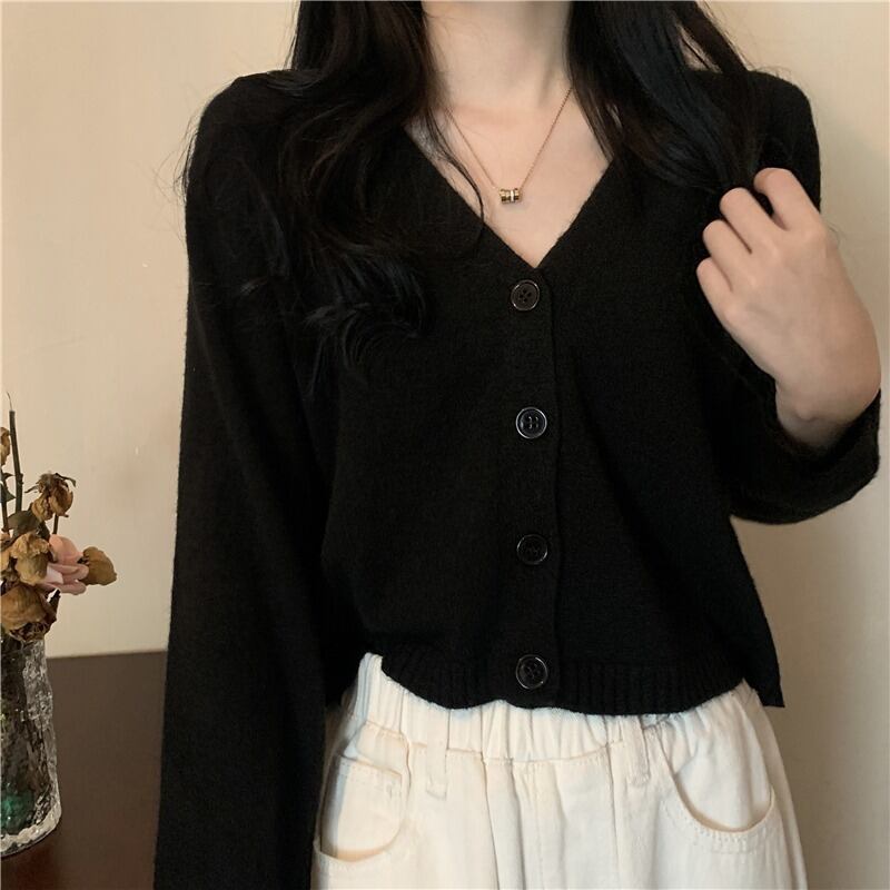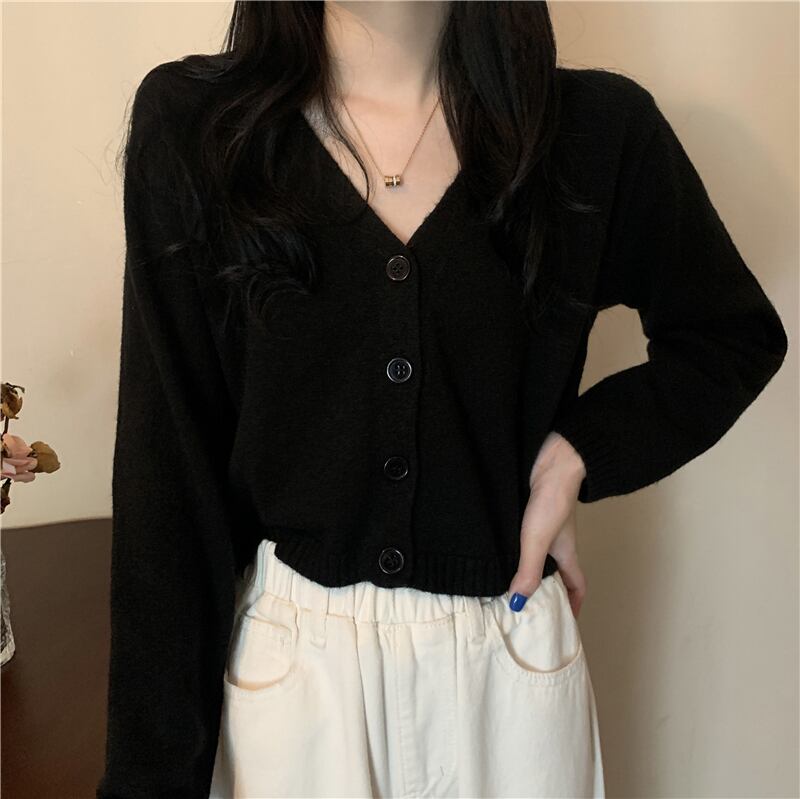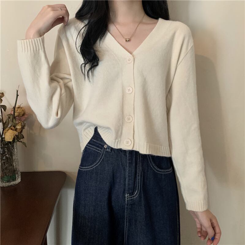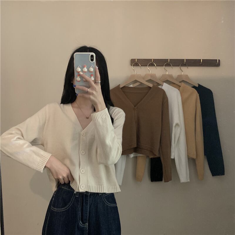 スタイルニットカーディガンオータムVネックソリッド カラーショートコート ジャケット レディース ロング 秋物 ソリッドカラー ハンチェンe46917503975