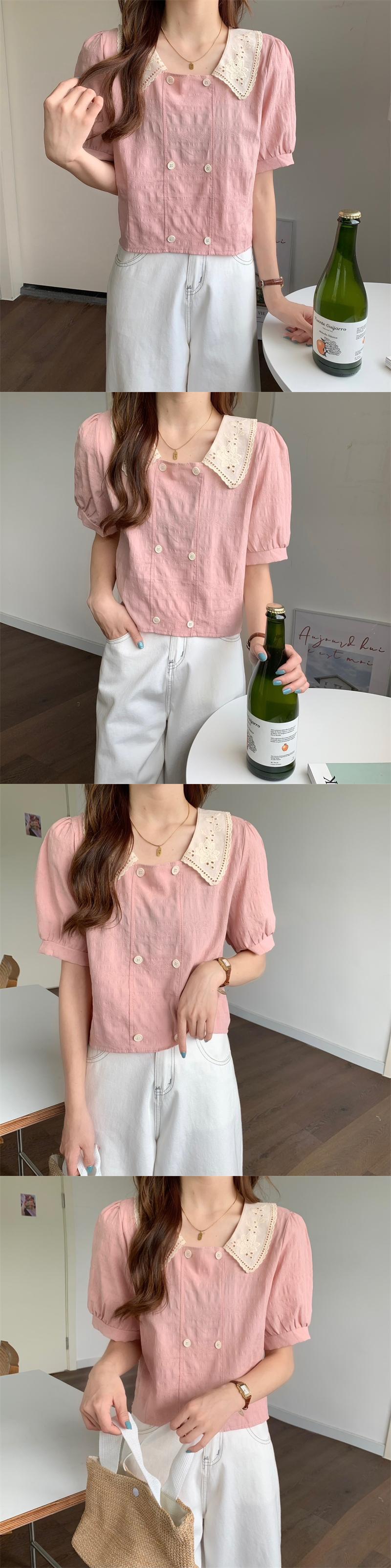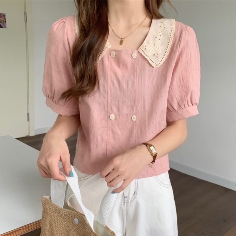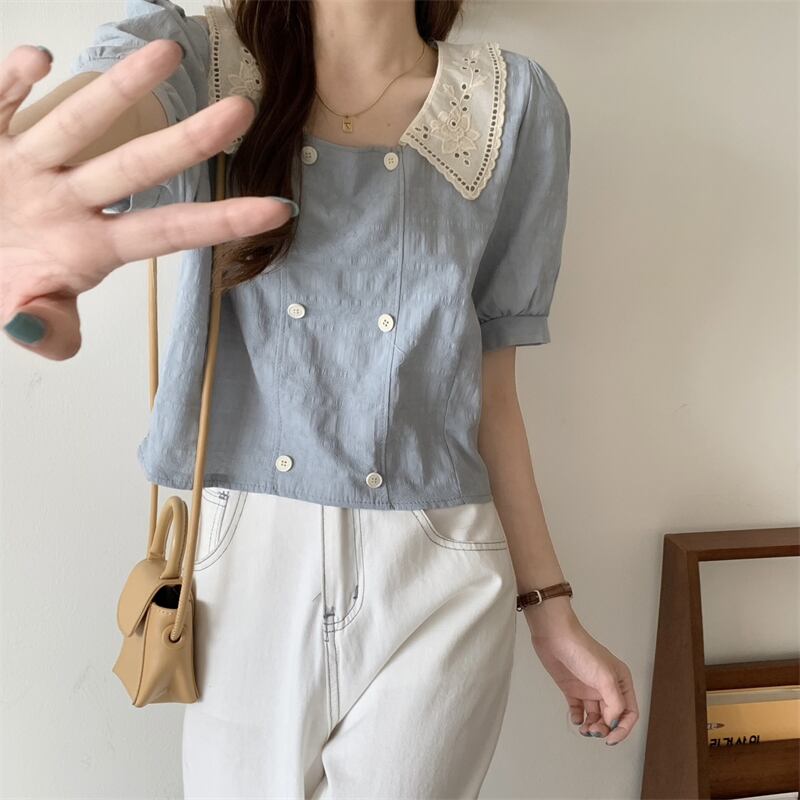 スタンダードショートスリーブシャツ カラートップス レトロ ハンチェンe79354967933