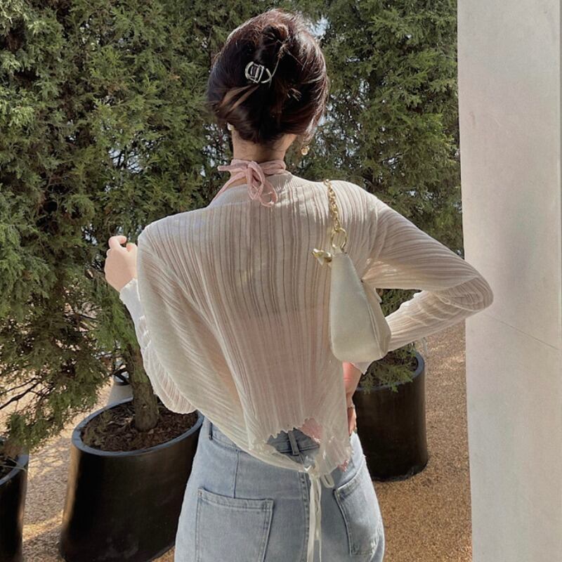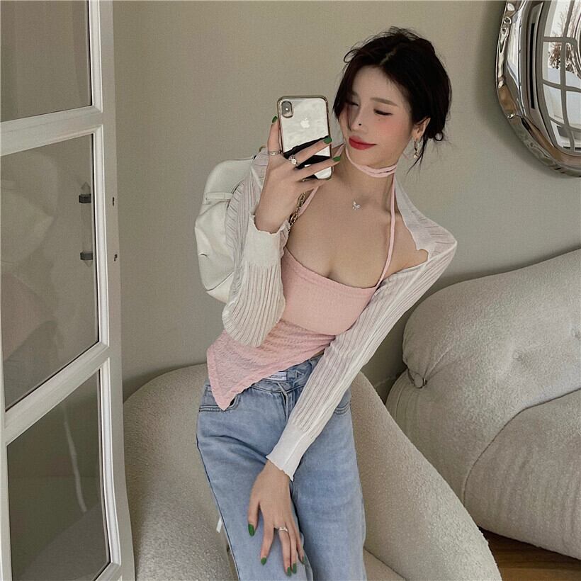 オータムホルター薄手ニットショートジャケット 秋物 ハンチェンe38571908981