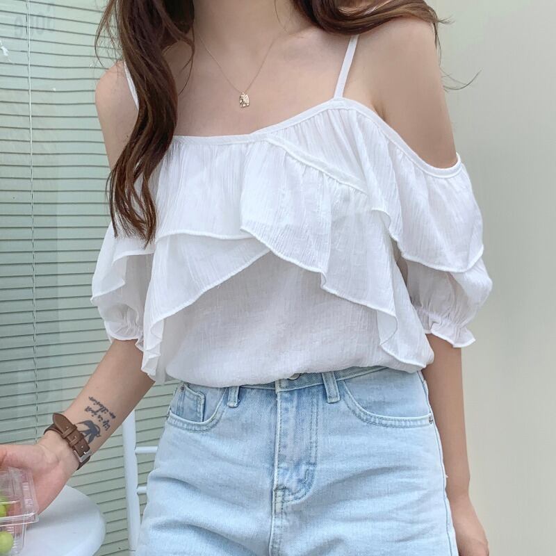 カラープリーツトップス シフォンシャツ レディース オフショルダー ハンチェンe41258429474