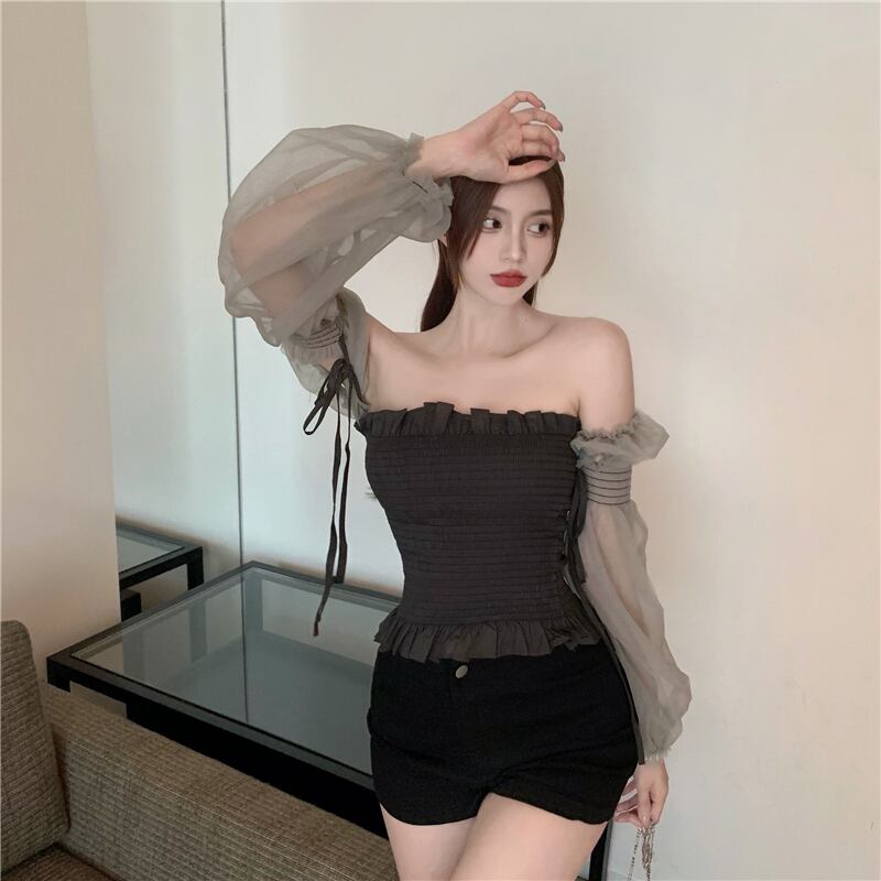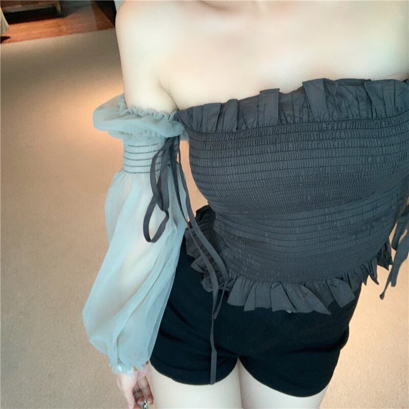 スリーブトップス メッシュシャツ レディース薄手ショート スクウェア ハンチェンe93199168864
