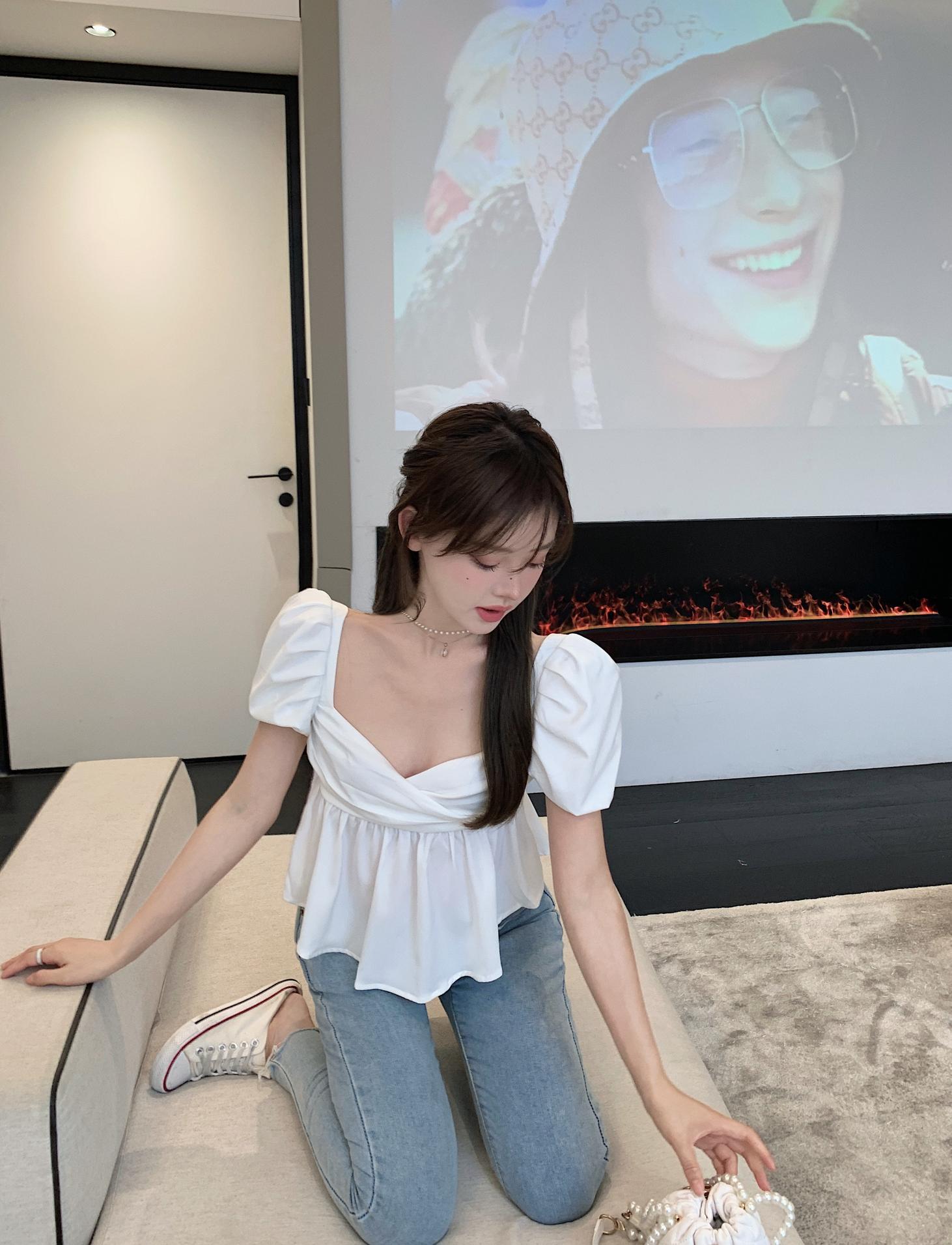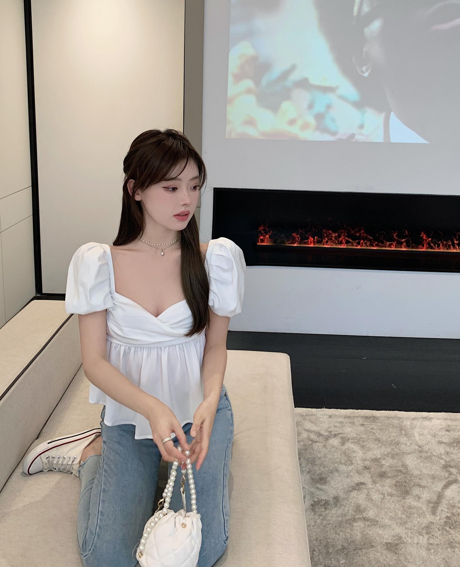 スタイルスリーブショートシャツ トップス レディース 大人ガーリー スウィート キュート カジュアル スクウェア ハンチェンe12198522113