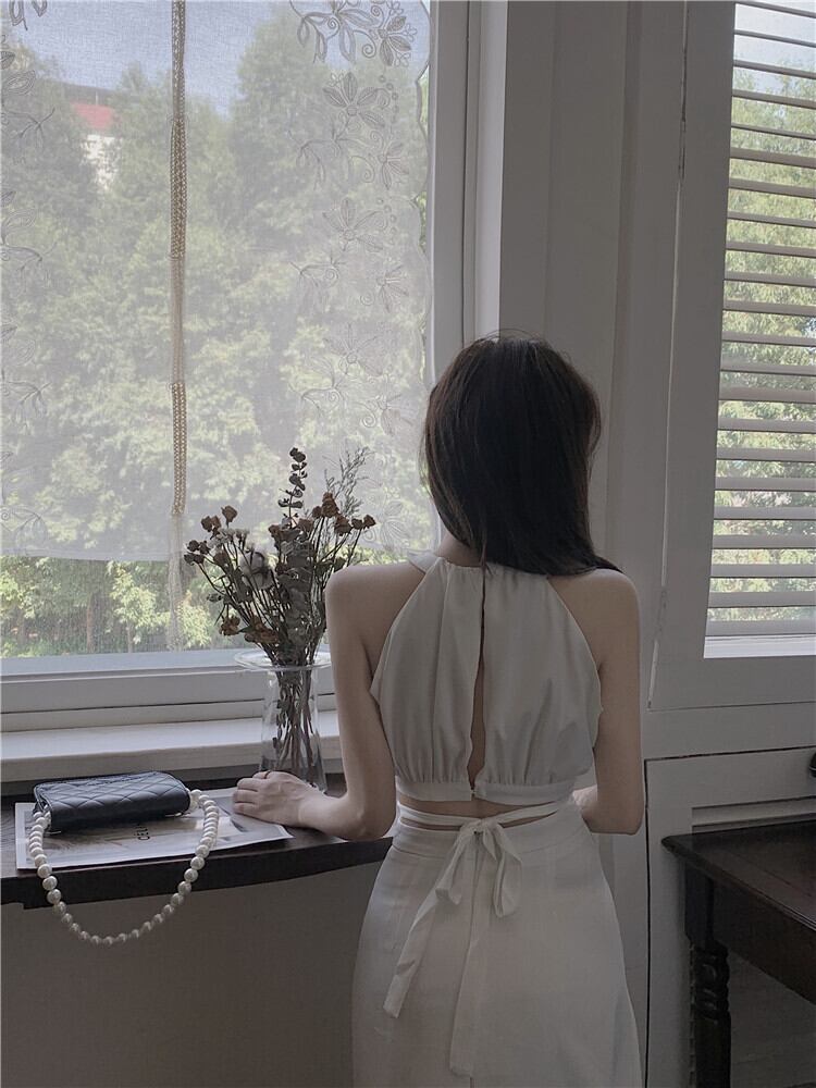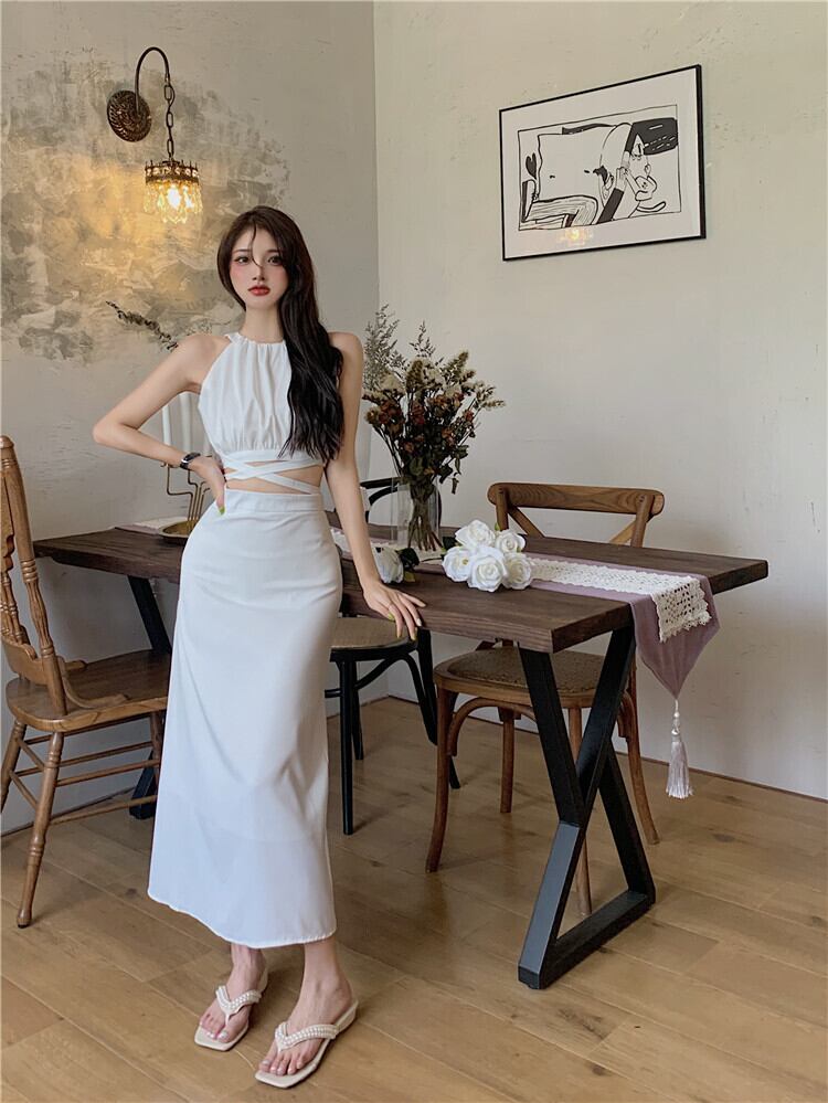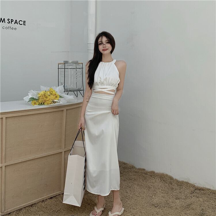 スタンダードホルタートップス ハイウェストウェストスカート レディース レトロ ハンチェンe37787492072