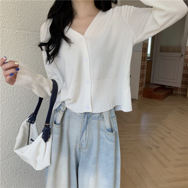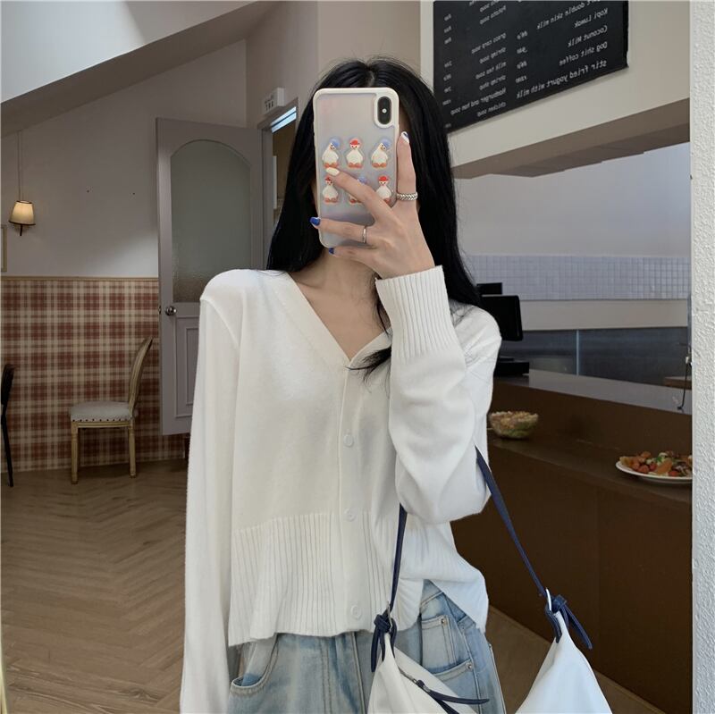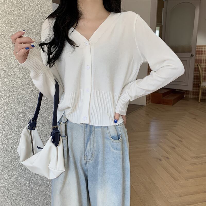 オータムスタイルVネックソリッド カラールーズニットカーディガンシャツ ロング 秋物 ソリッドカラー ハンチェンe42293082065